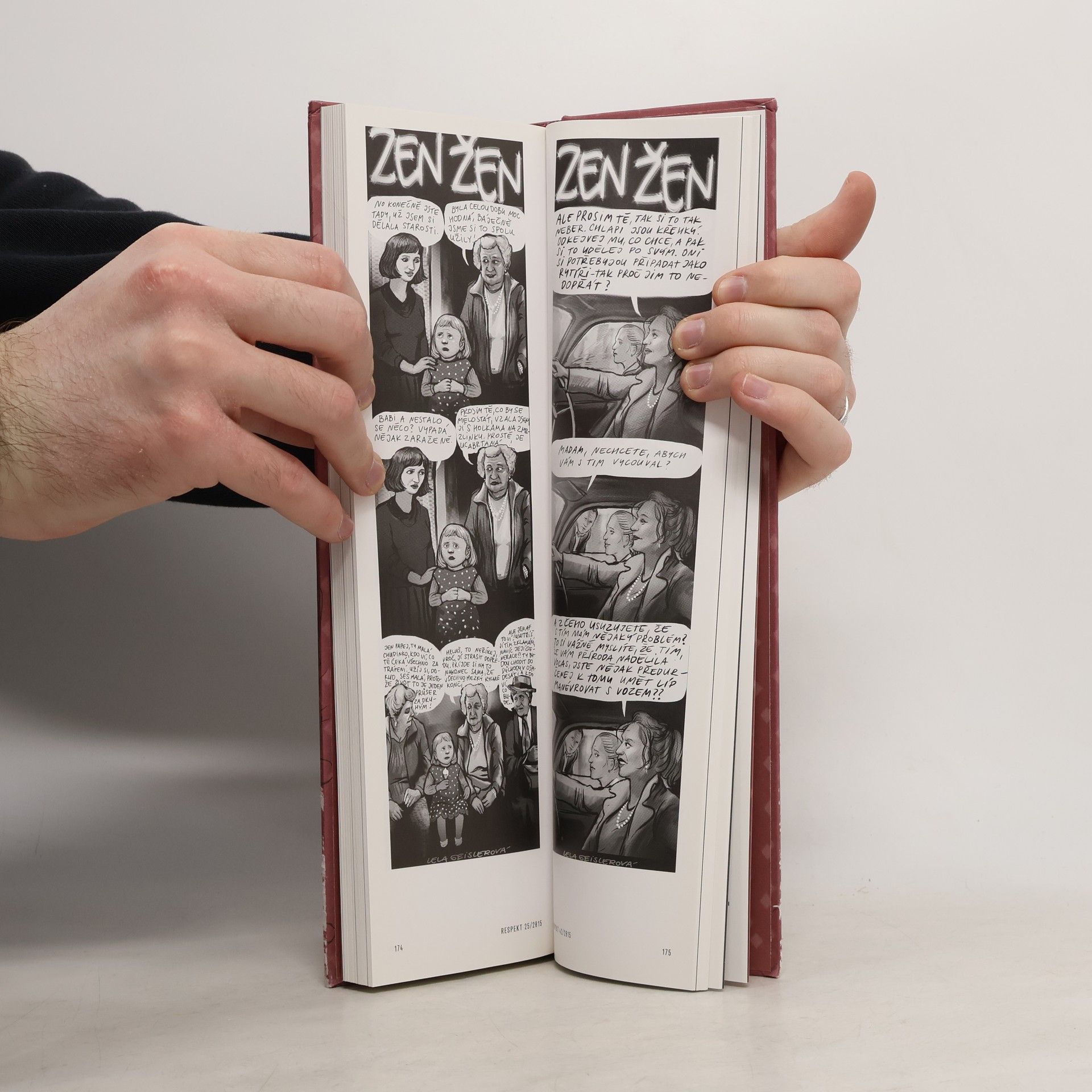 Slavný komiksový seriál Lely Geislerové vychází poprvé knižně a ve formátu, který se v žádné kabelce ani plátěné tašce neztratí. Kniha o ženách, ale nejen pro ženy. Kniha o tom, jaké to je, být dcerou, mámou, kamarádkou, manželkou nebo milenkou. Rozchody, filozofování nad vínem, milostné trapasy, zlobivé děti, nemožní partneři, cynické matky, a ještě trocha vína… Autorčin nadhled, humor a cit pro psychologický detail však důvěrně známé situace povyšují na zábavné etudy z nekonečného seriálu mezilidských vztahů. Přes dvě stovky epizod ze života moderní ženy představuje to nejlepší ze stripu, který několik let baví čtenářky a čtenáře týdeníku Respekt.