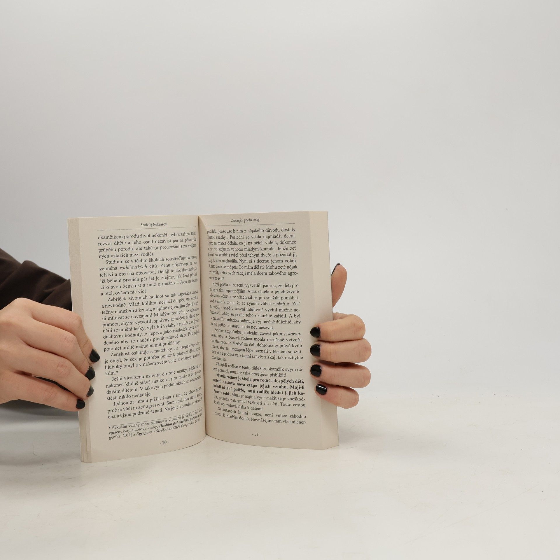 Anatolij Někrasov je slavný ruský psycholog, jenž mnoho let pomáhá svým klientům osobnostně i duchovně růst, rozvíjet partnerské vztahy a budovat šťastné rodiny. V této knize se hluboce zamýšlí nad deformací citů mezi členy rodiny, a hlavně pak mateřské lásky, jejíž posvátnost a opěvované sebeobětování si dovoluje zpochybňovat. Jakmile si přečtete tuto knihu, uvidíte své rodinné i partnerské vztahy v novém světle. Autor vám pomůže změnit pohled na zásadní věci, správně nastavit priority, ovlivnit osud vašich dětí a zlepšit vztahy s rodiči. Pokud se otevřete přirozené sebelásce a lásce, četné problémy se rozplynou a vám i vašim nejbližším se začne mnohem lépe dařit.