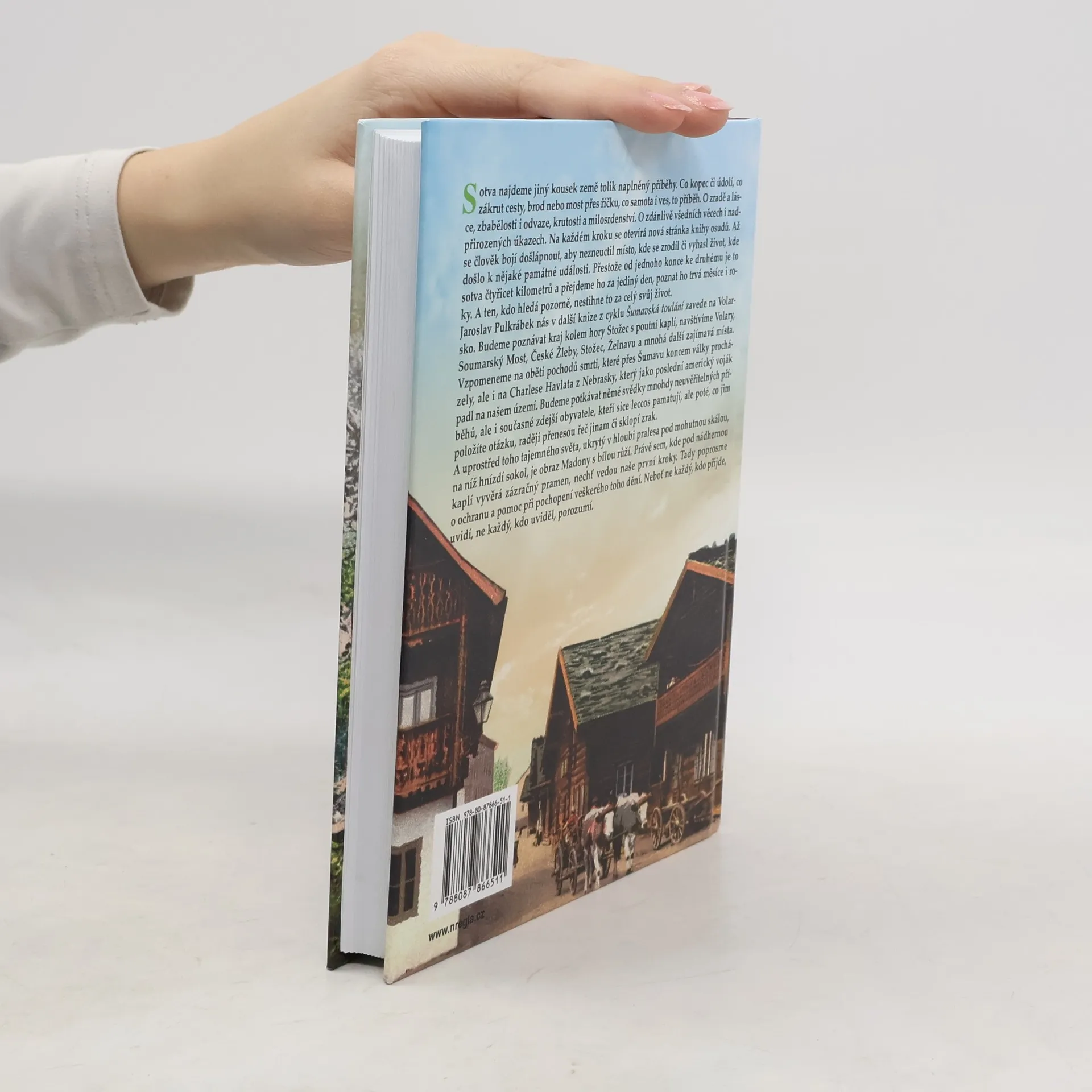 Tato země je prosycena příběhy, kde každý kopec, údolí, brod či most vypráví o zradě, lásce, odvaze a krutosti. Na každém kroku se otevírá nová stránka osudu, ačkoliv celá trasa měří jen čtyřicet kilometrů, její poznání může trvat měsíce či roky. Jaroslav Pulkrábek nás ve své další knize z cyklu Šumavská toulání zavede na Volarsko, kde objevíme kraj kolem hory Stožec s poutní kaplí, Volary, Soumarský Most, České Žleby a další zajímavá místa. Vzpomínáme na oběti pochodů smrti, které koncem války procházely Šumavou, a na Charlese Havlata, posledního amerického vojáka padlého na našem území. Setkáme se s mnohými svědky neuvěřitelných příběhů i s místními obyvateli, kteří často raději odvrátí zrak, než aby vzpomínali. Uprostřed tohoto tajemného světa, ukrytý v pralesích, nalezneme obraz Madony s bílou růží. Právě sem, k zázračnému prameni pod kaplí, by měly směřovat naše první kroky, abychom požádali o ochranu a pomoc při porozumění všem těmto událostem. Ne každý, kdo přijde, uvidí, a ne každý, kdo uvidí, porozumí.