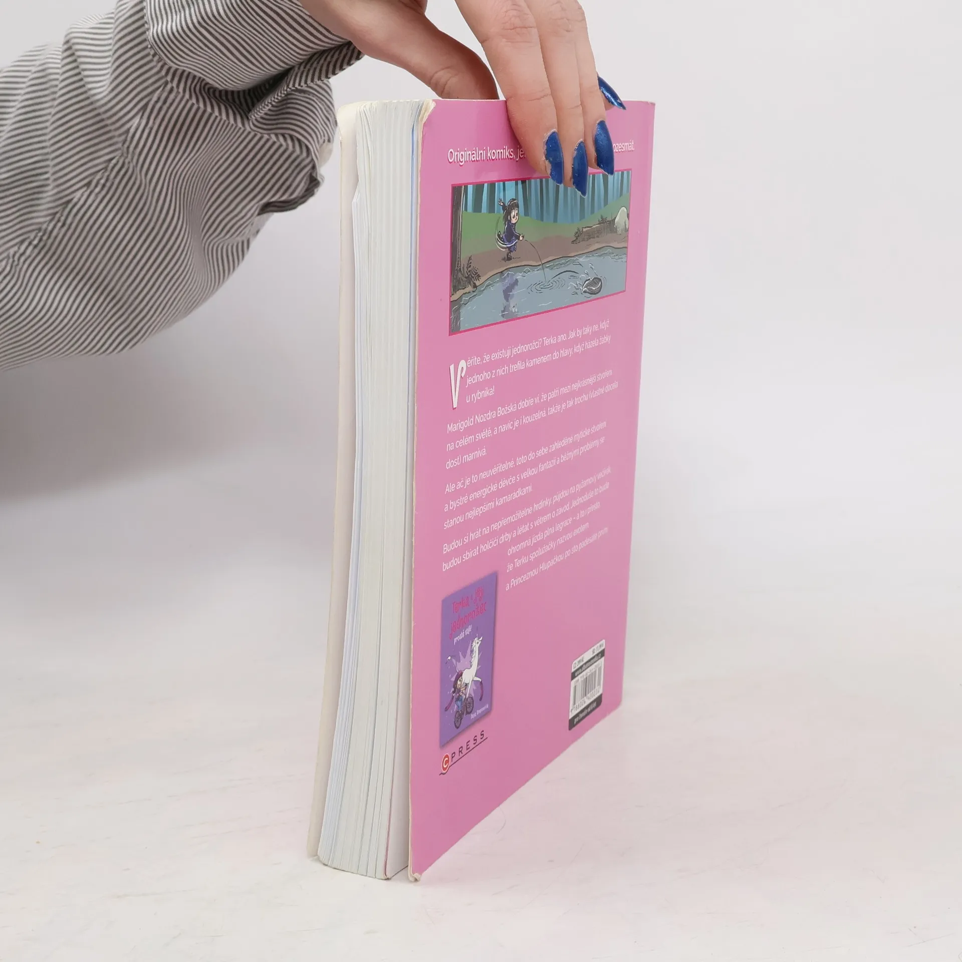 Věříte, že existují jednorožci? Terka ano. Jak by taky ne, když jednoho z nich trefila kamenem do hlavy, když házela žabky u rybníka! Marigold Nozdra Božská dobře ví, že patří mezi nejkrásnější stvoření na celém světě, a navíc je i kouzelná, takže je tak trochu (vlastně docela dost) marnivá. Ale ač je to neuvěřitelné, toto do sebe zahleděné mýtické stvoření a bystré energické děvče s velkou fantazií a běžnými problémy se stanou nejlepšími kamarádkami. Budou si hrát na nepřemožitelné hrdinky, půjdou na pyžamový večírek, budou sbírat holčičí drby a létat s větrem o závod. Jednoduše to bude ohromná jízda plná legrace - a to i přesto, že Terku spolužačky nazvou exotem a Princeznou Hlupačkou po sto padesáté první.
