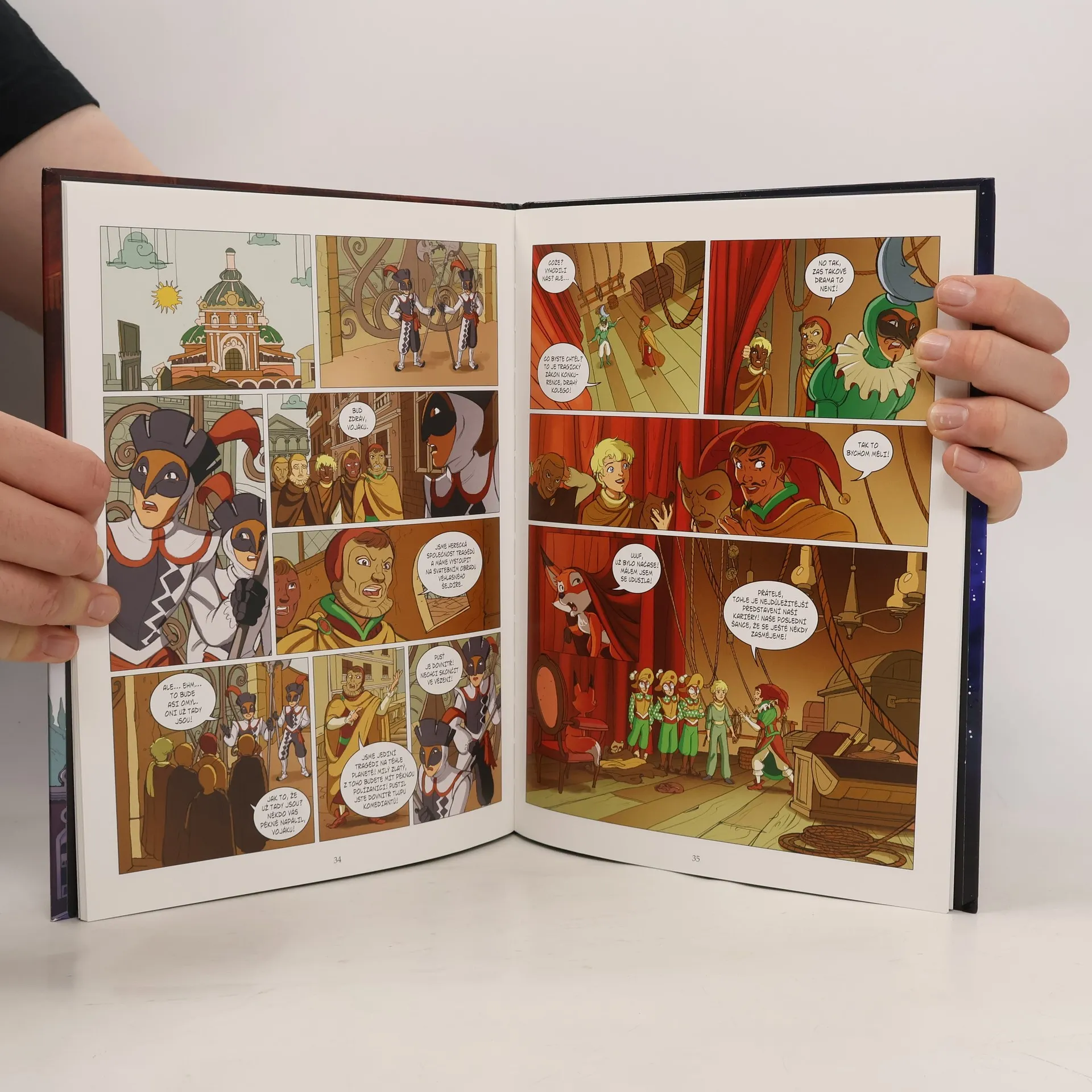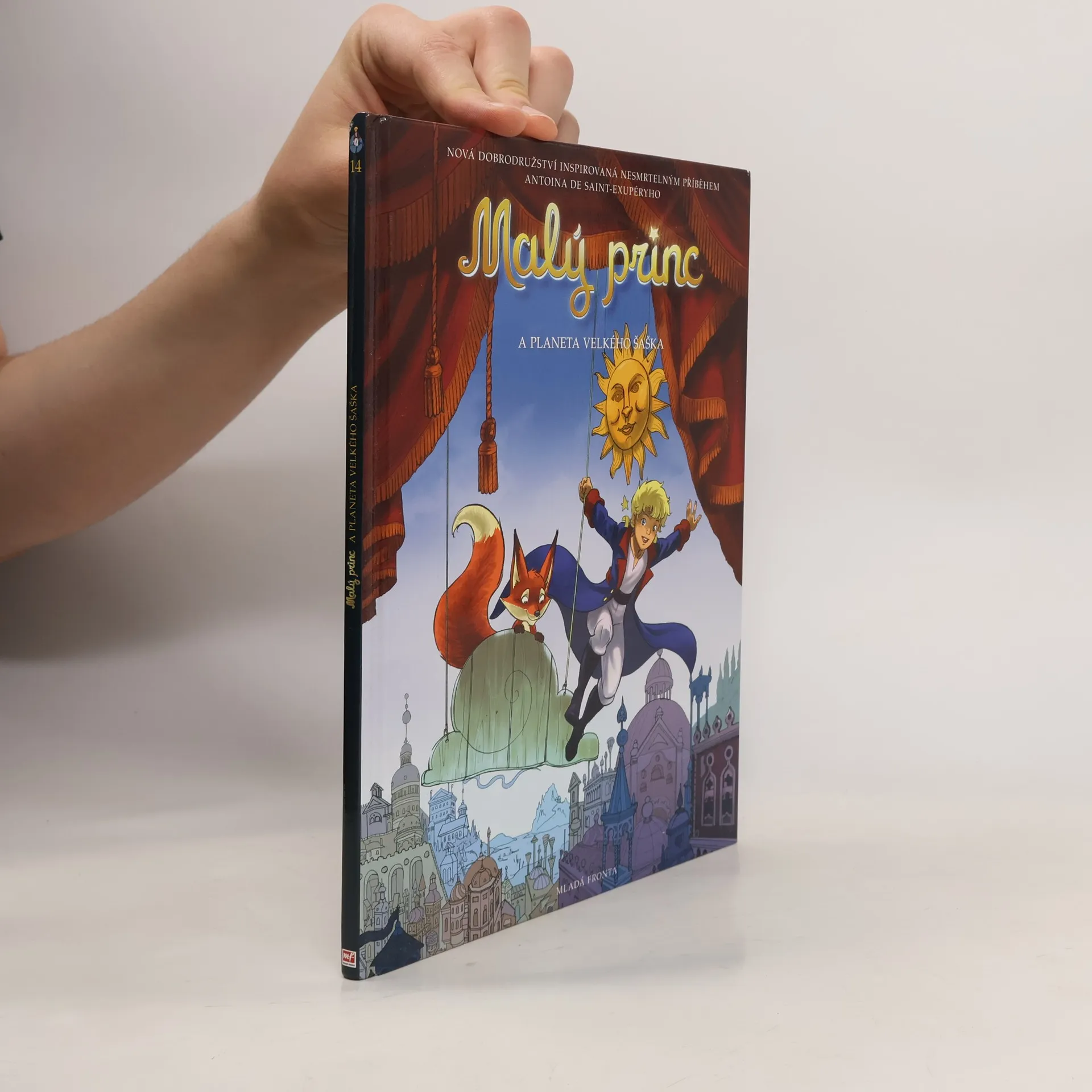 Na této planetě Malého prince a Lišku přivítají herci komedie dell´arte. Šašci, pieroti, harlekýni… Jde o zemi, která je cele zasvěcena divadlu a hlavně komedii. Jenomže nikdo se tu nesměje… Malý princ s Liškou zjistí, že panovník zakázal smích. Ukáže se, že tak učinil na popud svého hlavního rádce, a ten je zase pod neblahým vlivem… koho jiného, než Zlého hada. Bez smíchu se zdejší obyvatelé plouží po ulicích jako těla bez duše a jejich život ztrácí pomalu, ale jistě smysl. Podaří se našim dvěma hrdinům vytrhnout tuto planetu z letargie? První vydání.