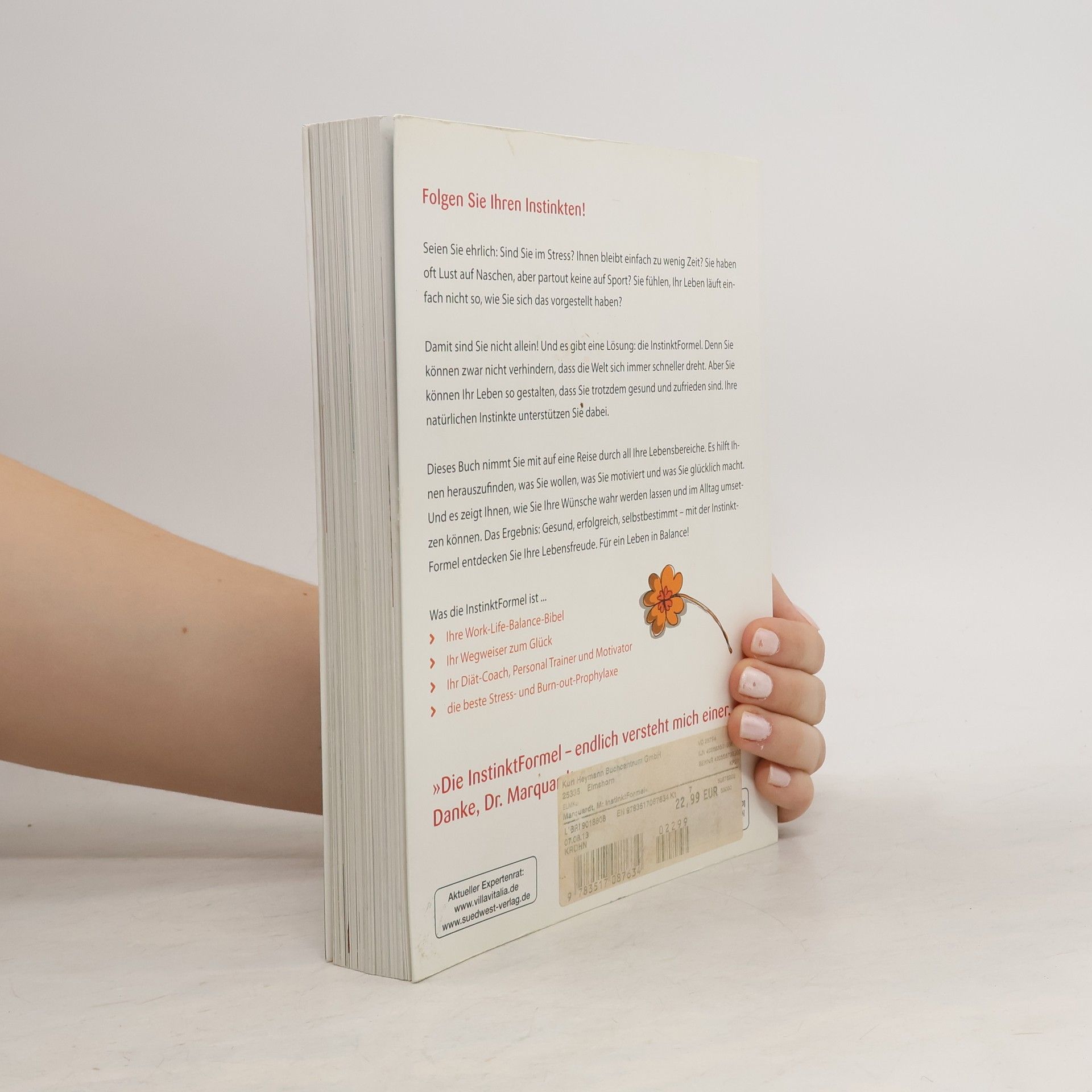 Folgen Sie Ihrem Instinkt Job, Familie, Freunde, Alltag … Sie fühlen sich manchmal davon überfordert, alles unter einen Hut zu bringen, oder haben, kurz gesagt, einfach zu wenig Zeit? Dann geht es Ihnen wie vielen Menschen: Wir arbeiten gegen unseren Körper und gegen unseren Geist. Damit verhindern wir nicht nur unsere persönliche Höchstleitung, sondern verbauen uns auch die Möglichkeit, mit uns selbst im Einklang zu leben. Doch Dr. Marquardt weiß: Wir können nicht verhindern, dass die Welt immer schneller und hektischer wird. Aber wir können unser Leben so gestalten, dass wir uns trotzdem gesund und glücklich fühlen. Mit der InstinktFormel können Sie Ihre Motivation wiederfinden und Ihre Lebensziele fixieren: Wie steht es um Ihre Work-Life-Balance? Wieso neigen Sie dazu, sich zu überlasten? Warum schaffen Sie Ihr Sportprogramm einfach nicht? Warum haben gerade Sie so viel Stress? Denn mithilfe der InstinktFormel lassen sich die fünf Lebensbereiche – Leistung und Beruf, Ernährung und Gesundheit, Bewegung und Entspannung, Leben und Kontakte, persönliche Entwicklung – schnell und systematisch analysieren. So findet Sie heraus, was Sie wirklich wollen und was Sie glücklich macht.
