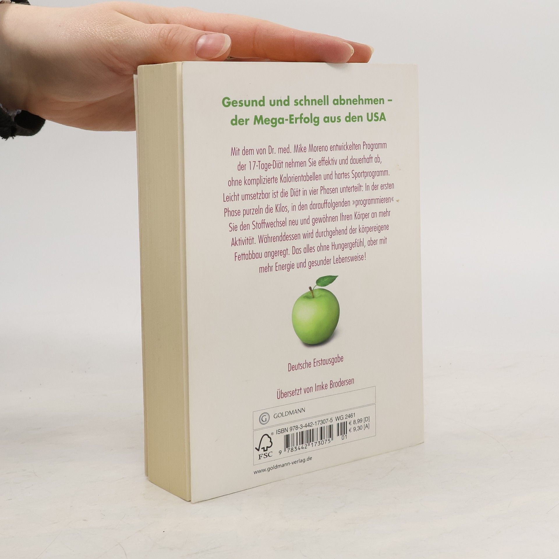 Schnell, effektiv und unkompliziert: abnehmen mit ärztlichem Rat Schnell und gleichzeitig dauerhaft abnehmen mit dem von Dr. med. Mike Moreno entwickelten Programm der 17-Tage-Diät. Leicht umsetzbar ist es in Phasen unterteilt: In der ersten Phase purzeln die Kilos, in den darauffolgenden wird der Stoffwechsel neu „programmiert“ und der Körper an mehr Aktivität gewöhnt. Währenddessen wird durchgehend der körpereigene Fettabbau angeregt. Das alles ohne Hungergefühl, aber mit mehr Energie und gesunder Lebensweise!