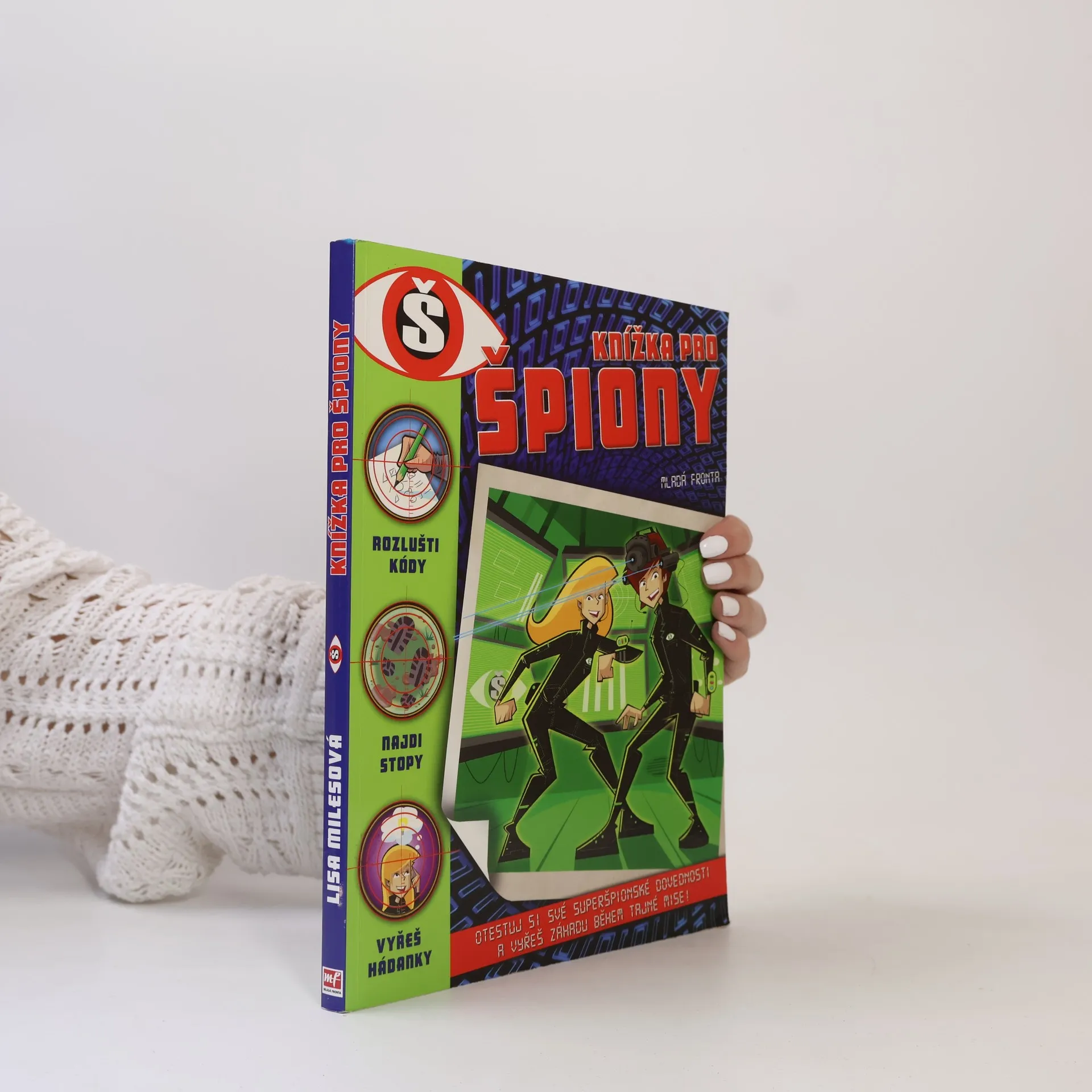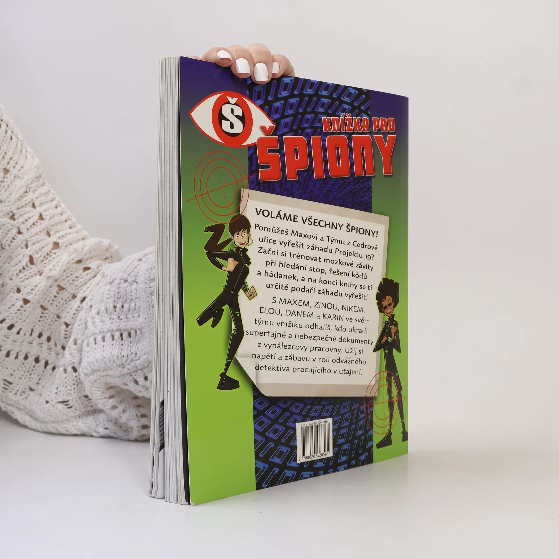 Co stránka, to kód, indicie, hlavolam, rébus – to pravé pro začínající špiony! Hledáme schopné špiony a tajné agenty! Pomůžete Maxovi a jeho Týmu z Cedrové ulice vyřešit záhadu Projektu č. 19? Ponořte se do naší špionské knížky, seznamte se s členy týmu a s jejich pomocí se naučte, co všechno musí pravý špion umět – hledejte stopy a indicie, snažte se rozluštit kódované zprávy, hádanky a rébusy, pocvičte si postřeh a paměť. Když to všechno zvládnete, čeká vás na konci knihy rozluštění záhady.