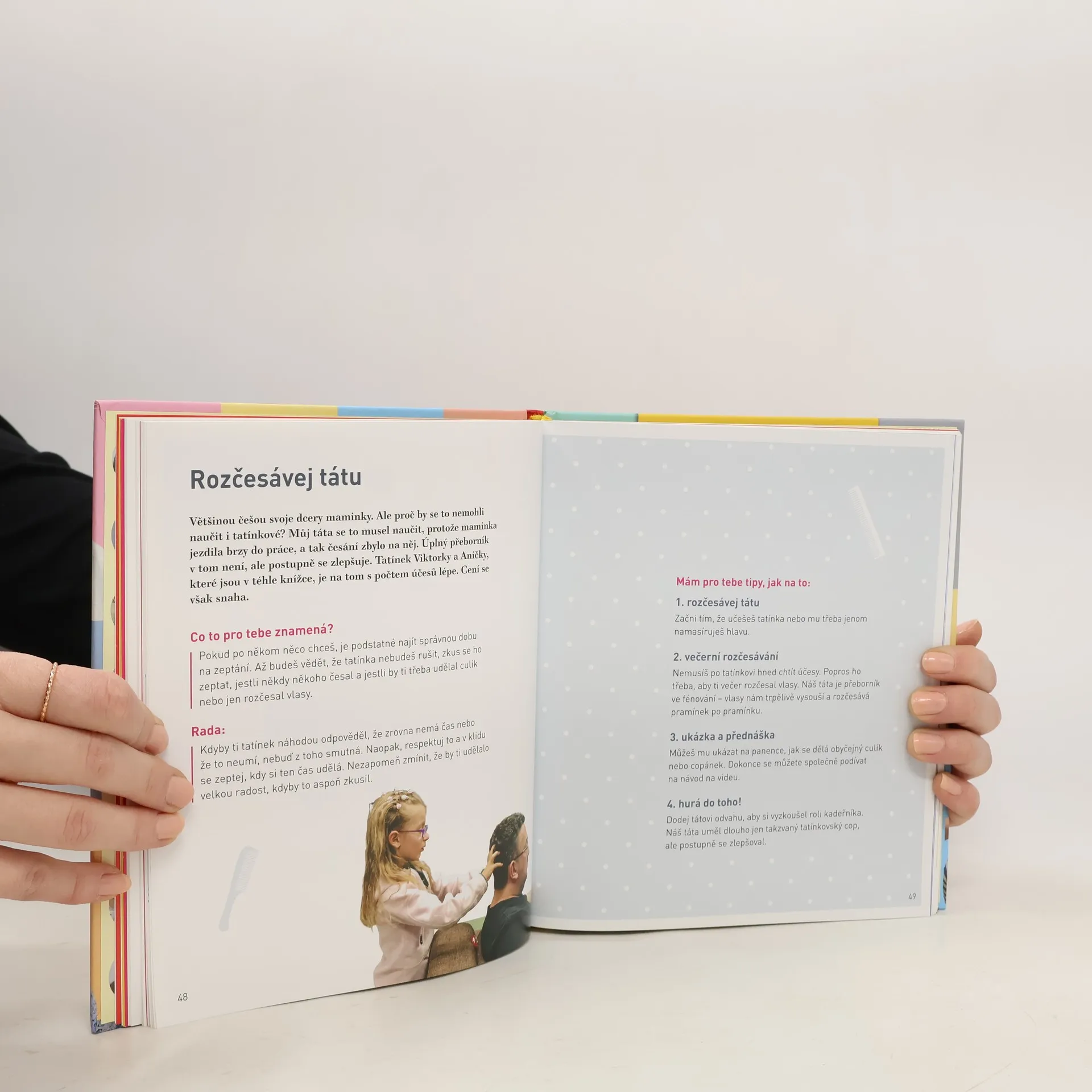 Dětské účesy do 10 minut. Účes do školy a do školky během chvilky? Jde to! Díky knize Rozčesejme Česko přestává být česání sci-fi! A to jak pro maminky prožívající hektická rána, tak pro ty, kdo si myslí, že mají nešikovné prsty. Psycholožka Anna Lukešová, maminka dvou dcer a lektorka 1. školy účesů, vám poradí, jak na dítě, které se nerado češe, a prozradí úzkou spojitost mezi česáním a psychologií. Originálním způsobem, kterým je přehledný fotonávod či videonávod pod QR kódem, se naučíte řadu účesů i jejich variací. Hravě tak zvládnete učesat Saturn, Pampelišku, Kobru, Levanduli, Korunku nebo třeba Plavečák či Pavučinu.