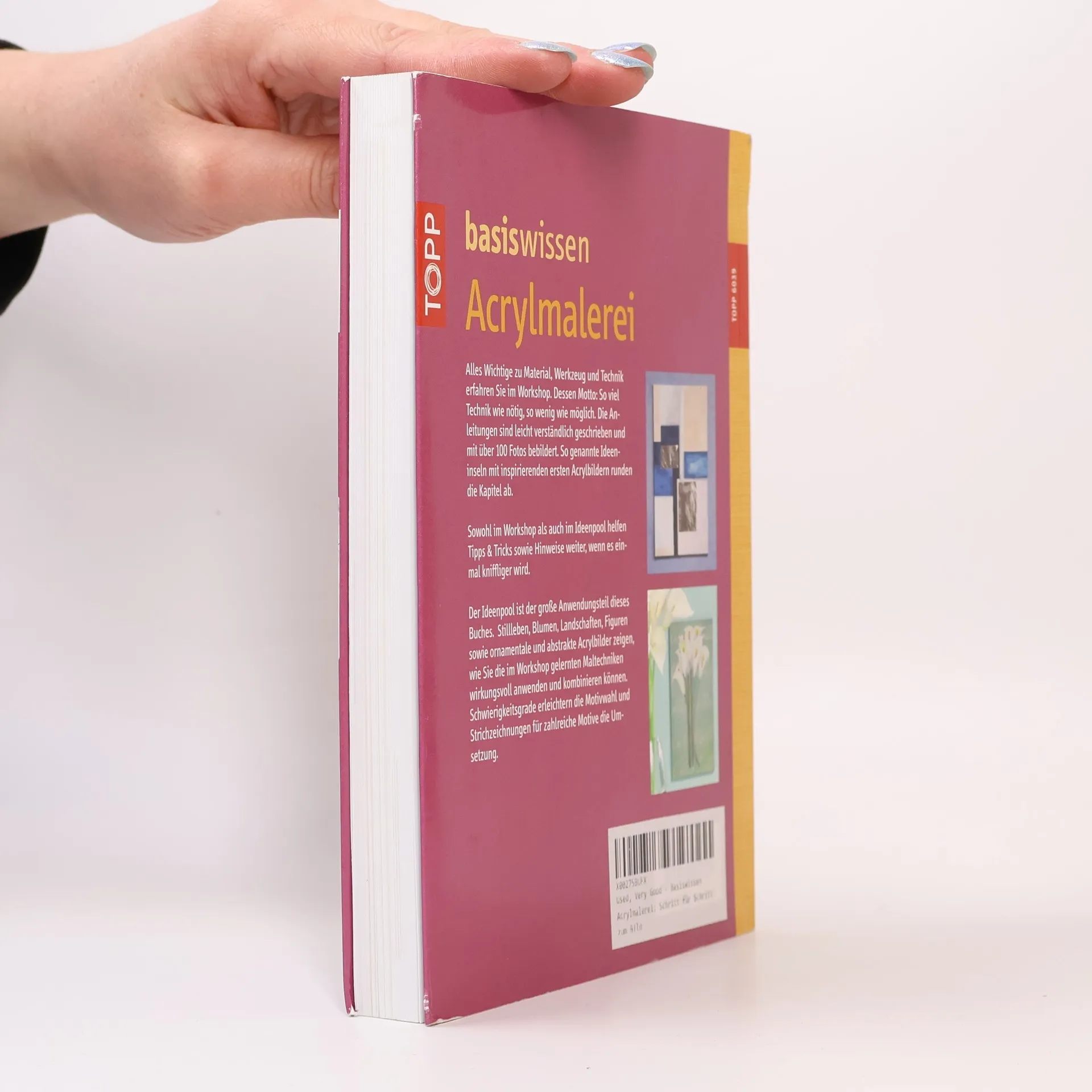 Basiswissen Acrylmalerei. Schritt für Schritt vom Motiv zum Bild. Alles Wichtige zu Material, Werkzeug und Technik – kompakt und preisgünstig. Ideenpool mit großer Auswahl, abstrakte Bilder, Landschaften, Figuren und vieles mehr. Leicht verständliche Anleitungen plus viele Tipps und Tricks. 192 Seiten, 16 x 21 cm, Softcover.
