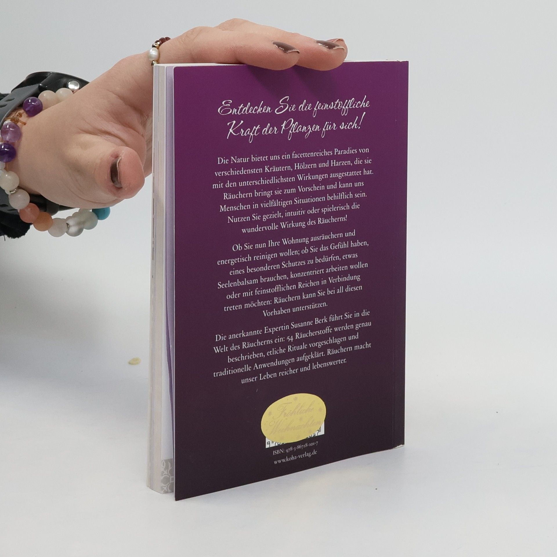 Entdecken Sie die feinstoffliche Kraft der Pflanzen für sich! Die Natur bietet uns ein facettenreiches Paradies von verschiedensten Kräutern, Hölzern und Harzen, die sie mit den unterschiedlichsten Wirkungen ausgestattet hat. Räuchern bringt sie zum Vorschein und kann uns Menschen in vielfältigen Situationen behilflich sein. Nutzen Sie gezielt, intuitiv oder spielerisch die wundervolle Wirkung des Räucherns! Ob Sie nun Ihre Wohnung ausräuchern und energetisch reinigen wollen; ob Sie das Gefühl haben, eines besonderen Schutzes zu bedürfen, etwas Seelenbalsam brauchen, konzentriert arbeiten wollen oder mit feinstofflichen Reichen in Verbindung treten möchten: Räuchern kann Sie bei all diesen Vorhaben unterstützen. Die anerkannte Expertin Susanne Berk führt Sie in die Welt des Räucherns ein: 54 Räucherstoffe werden genau beschrieben, etliche Rituale vorgeschlagen und traditionelle Anwendungen aufgeklärt. Räuchern macht unser Leben reicher und lebenswerter.