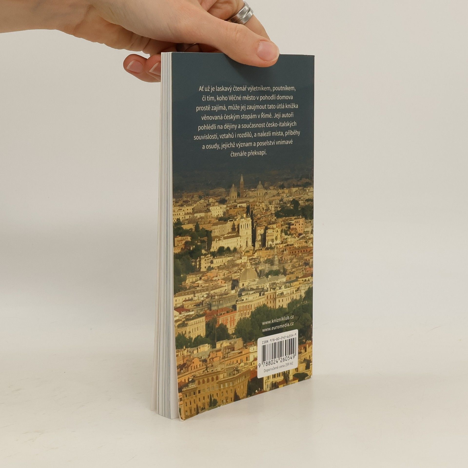 Ať už je laskavý čtenář výletníkem, poutníkem, či tím, koho Věčné město v pohodlí domova prostě zajímá, může jej zaujmout tato útlá knížka věnovaná českým stopám v Římě. Její autoři pohlédli na dějiny a současnost česko-italských souvislostí, vztahů i rozdílů, a nalezli místa, příběhy a osudy, jejichž význam a poselství vnímavé čtenáře překvapí.