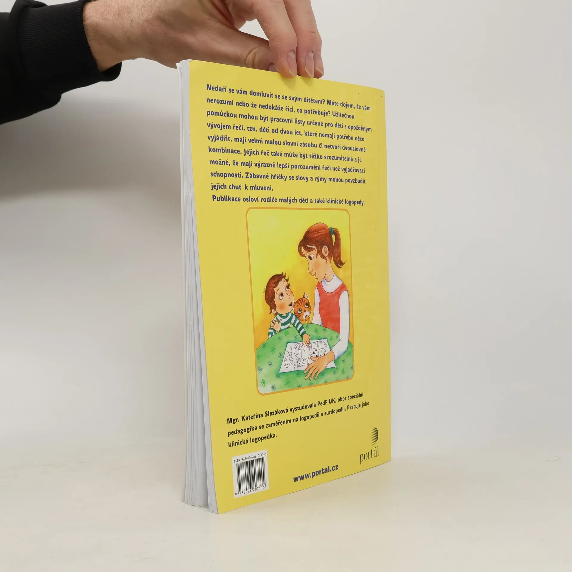Pracovní listy pro rozvoj dětské řeči. Nedaří se vám domluvit se se svým dítětem? Máte dojem, že vám nerozumí, nebo že nedokáže říci, co potřebuje? Užitečnou pomůckou mohou být pracovní listy, které vytvořila klinická logopedka Kateřina Slezáková ve spolupráci s ilustrátorkou Patricií Koubskou. Pracovní listy jsou určené pro děti s opožděným vývojem řeči, tzn. děti od dvou let, které nemají potřebu něco vyjádřit, mají velmi malou slovní zásobu, netvoří dvouslovné kombinace nebo je jejich řeč pro blízké těžko srozumitelná a mají výrazně lepší porozumění řeči než vyjadřovací schopnosti. Pracovní listy osloví rodiče malých dětí a také klinické logopedy, kteří s nimi pracují.