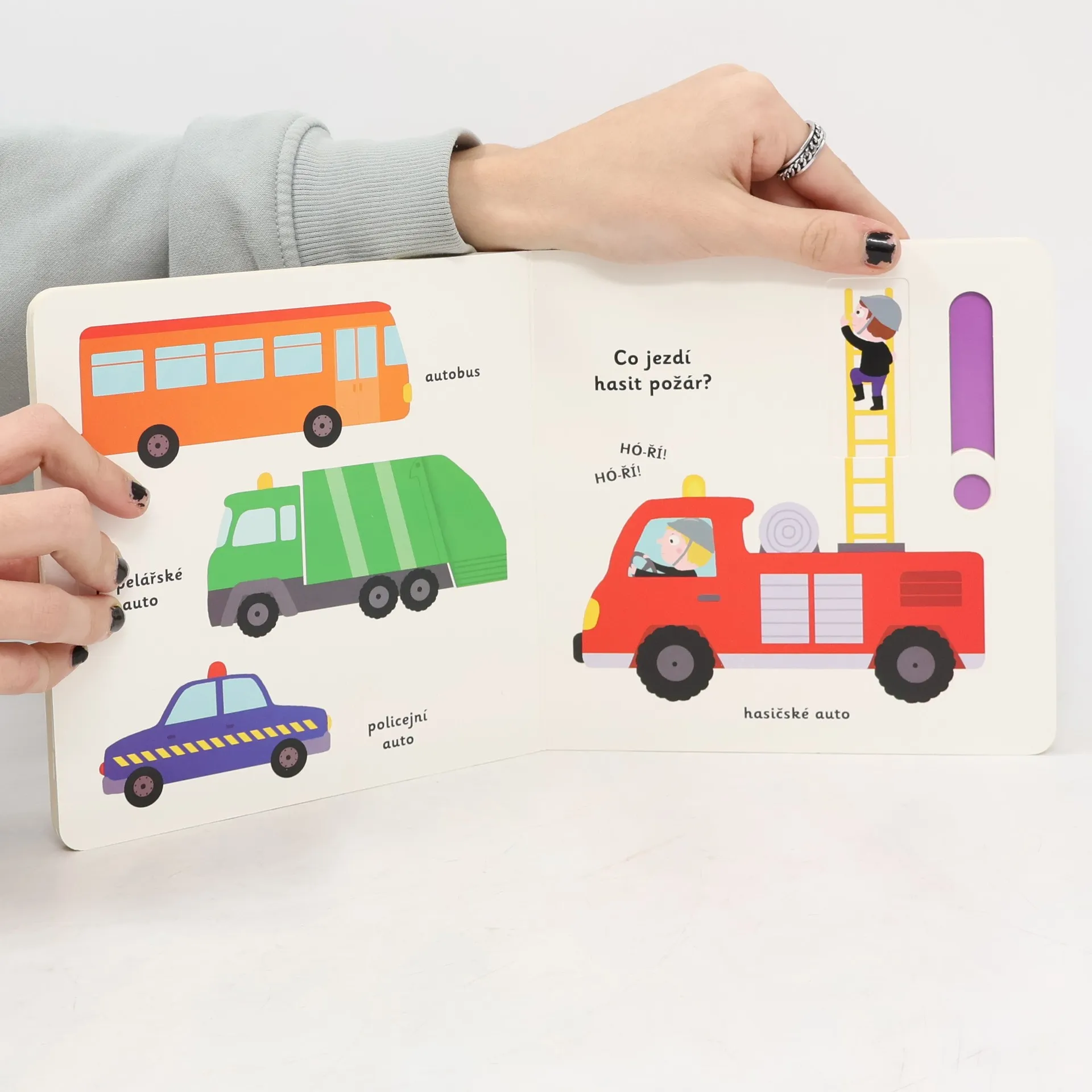 Objevovat svět vozidel a dopravních prostředků s tímto leporelem je tak zábavné! Tú, tú, copak to přijíždí a troubí? Co jezdí hasit požáry? Jaký stroj přenáší na staveništi těžké náklady? Co létá pomocí vrtule? Stačí jen vložit prstík do správného otvoru a lehce vysunout, zatáhnout nebo otočit ve směru šipky a hned bude váš malý objevitel znát odpovědi. Leporelo je určeno pro nejmenší děti od jednoho roku a má pevné stránky s posuvnými a otočnými prvky, a tak si naši nejmenší mohou při prohlížení a rozeznávání různých druhů vozidel a dopravních prostředků procvičit i jemnou motoriku.