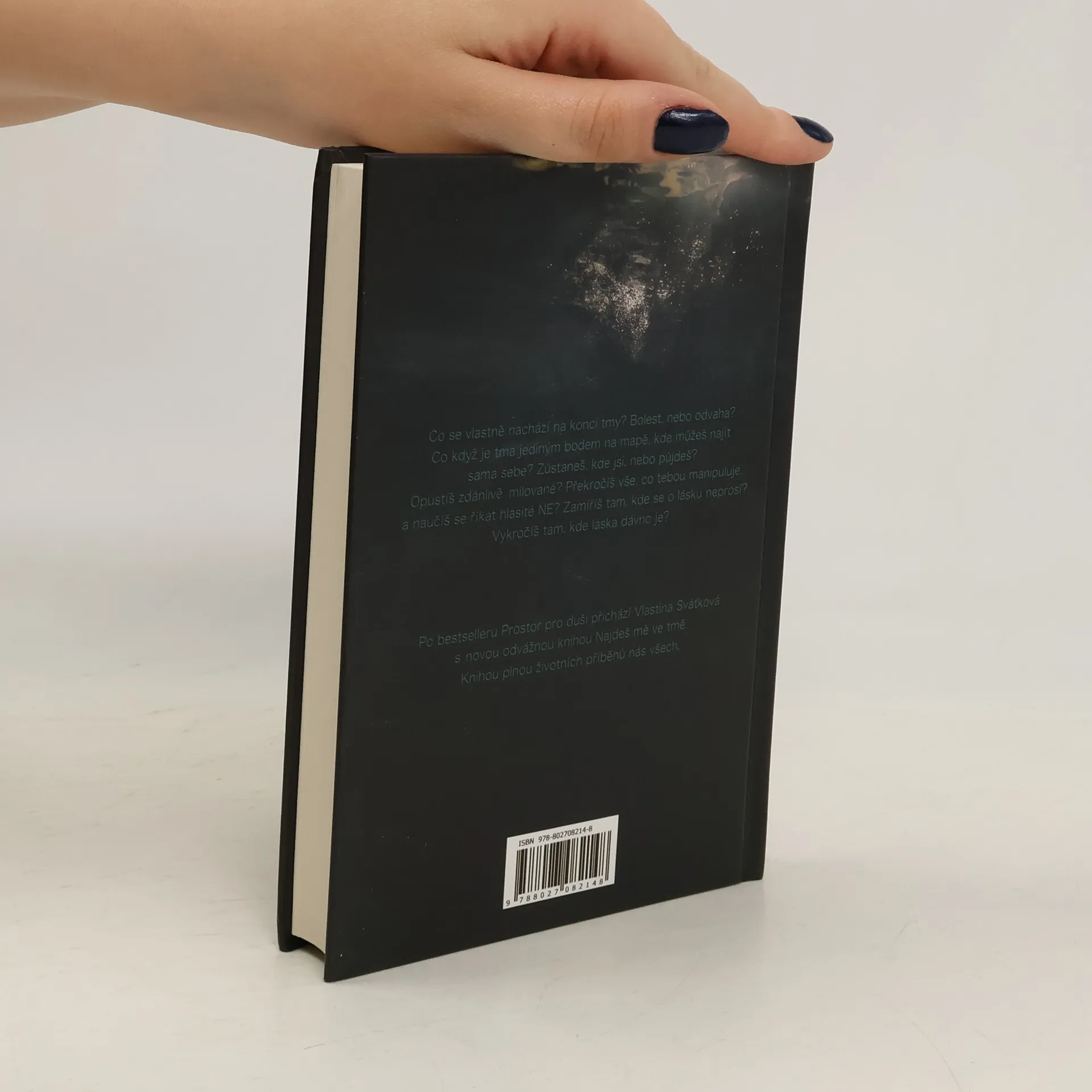 Vše, co září, si musí projít tmou. Není třeba se jí bát. Jen se jí nechat vést. Co se vlastně nachází na konci tmy? Bolest, nebo odvaha? Co když je tma jediným bodem na mapě, kde můžeš najít sama sebe? Zůstaneš, kde jsi, nebo půjdeš? Opustíš zdánlivě milované? Překročíš vše, co tebou manipuluje, a naučíš se říkat hlasité NE? Zamíříš tam, kde se o lásku neprosí? Vykročíš tam, kde láska dávno je? Ve své nové knize Najdeš mě ve tmě, jsem psala o tom, co jsem slyšela v naprostém tichu. O lidech, kteří nic neříkají, ale tolik by toho potřebovali říct. Naslouchala jsem tomu, co nikdo nahlas nevysloví, protože strach je silnější. Naslouchala jsem sama sobě a psala o tichu ve tmě. Příběh o hoře, na kterou jsem vyšlapala, abych se podívala před sebe, na pokraji sil a skoro bez dechu, a uviděla ještě větší horu. Cesta, která nikdy nekončí. Cesta, která nám dovolí na chvíli pocítit záblesk štěstí. Cesta, která nám ukazuje vše, co potřebujeme vědět. Cesta, která nás vede tam, kam potřebujeme jít, i když neříká nic o místě, kam nás vede. Můj příběh je i váš. Byl, nebo jednou bude. Všichni jsme součástí toho, co čteme.