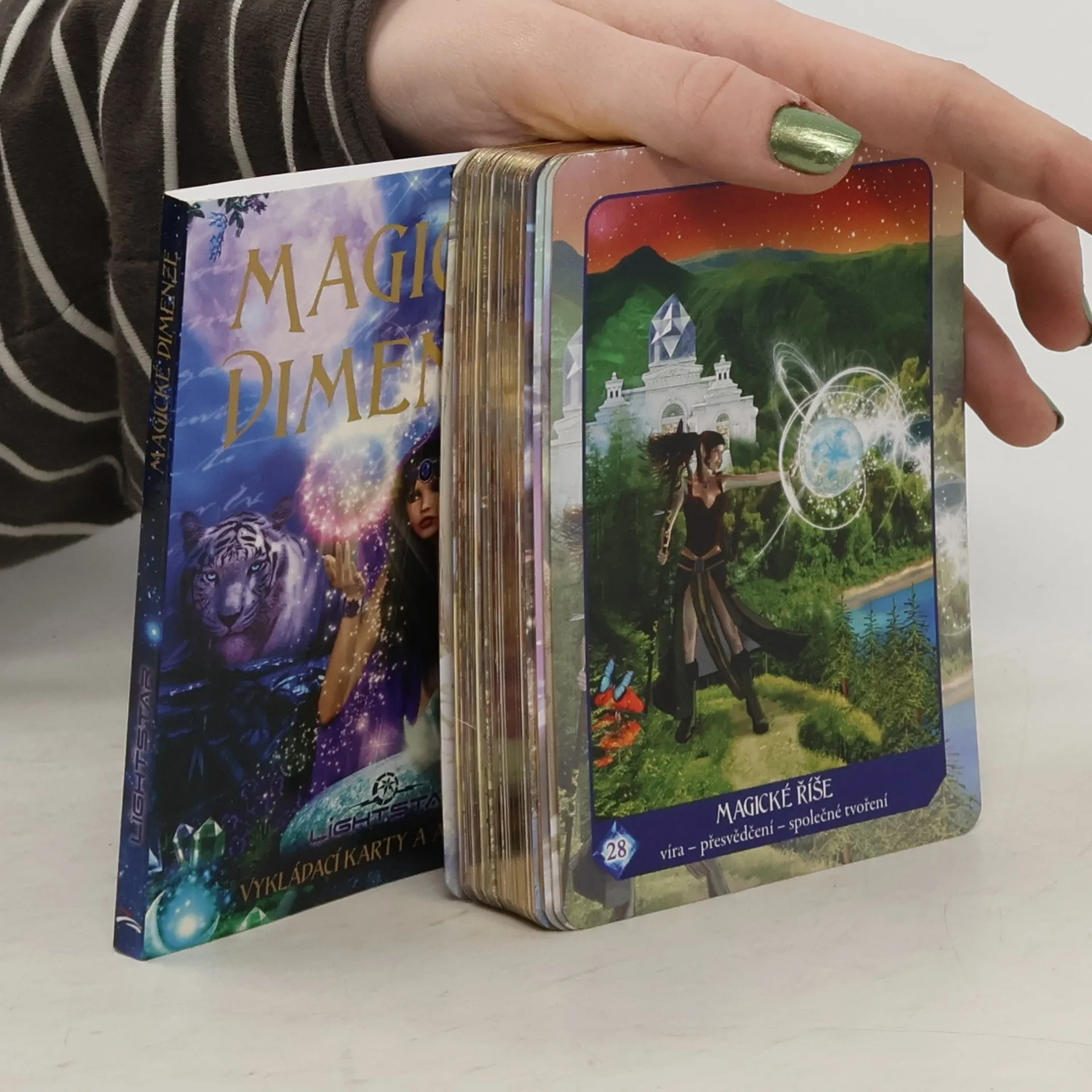 Průzračná, až jiskřivá čistota těchto karet snadno vchází do lidské duše, osvěží ji a budí intuici. Díky ní pak dostáváte přesně ty informace, které potřebujete v tu danou chvíli. Autorka připravila pět unikátních věšteckých výkladů a tři mocné aktivační výklady pro zdravé vztahy, léčení a získání peněz. V každém případě vás čeká cesta do dimenzí snad celého vesmíru. Karty Magické dimenze dávají klíče ke štěstí, k umění být pánem svého osudu. Není právě tohle nejdůležitější na světě? Zasněné, hluboké, třpytivé a jasné karty pro meditaci i ryze praktické výklady vás určitě osloví a přinesou inspiraci k životní změně. Nechte se vést…