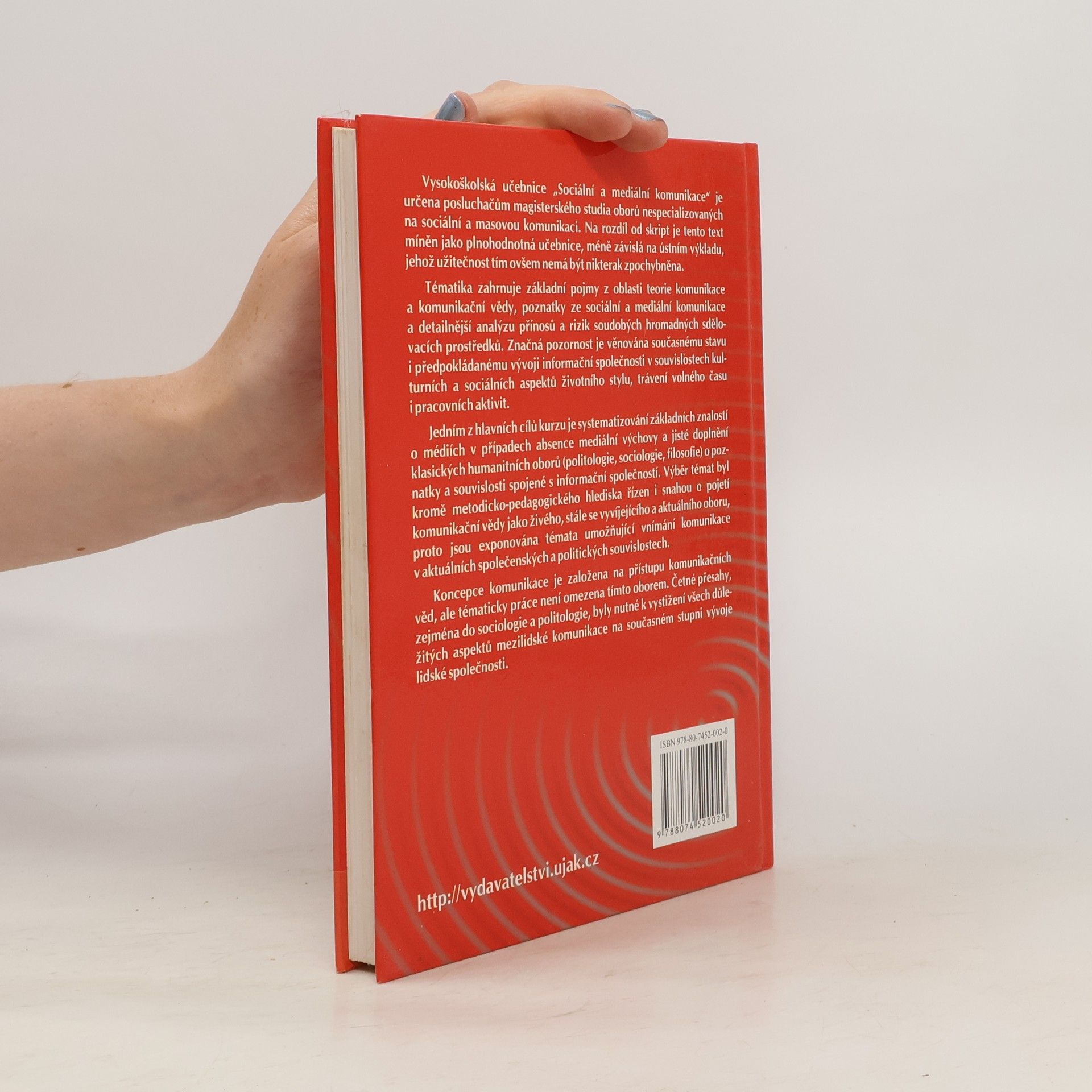 Vysokoškolská učebnice Sociální a mediální komunikace je určena posluchačům magisterského studia oborů, které se nezaměřují na sociální a masovou komunikaci. Tento text slouží jako plnohodnotná učebnice, méně závislá na ústním výkladu, přičemž jeho užitečnost není zpochybněna. Obsahuje základní pojmy z teorie komunikace a komunikační vědy, poznatky ze sociální a mediální komunikace a analýzu přínosů a rizik soudobých hromadných sdělovacích prostředků. Velká pozornost je věnována současnému stavu a předpokládanému vývoji informační společnosti v kontextu kulturních a sociálních aspektů životního stylu a pracovních aktivit. Cílem kurzu je systematizovat základní znalosti o médiích v případech absence mediální výchovy a doplnit klasické humanitní obory (politologie, sociologie, filosofie) o poznatky související s informační společností. Výběr témat byl řízen snahou o pojetí komunikační vědy jako živého a aktuálního oboru, což umožňuje vnímat komunikaci v současných společenských a politických souvislostech. Koncepce komunikace vychází z přístupu komunikačních věd, ale není tímto oborem omezena. Přesahy do sociologie a politologie jsou nutné k vystižení důležitých aspektů mezilidské komunikace na současném stupni vývoje lidské společnosti.