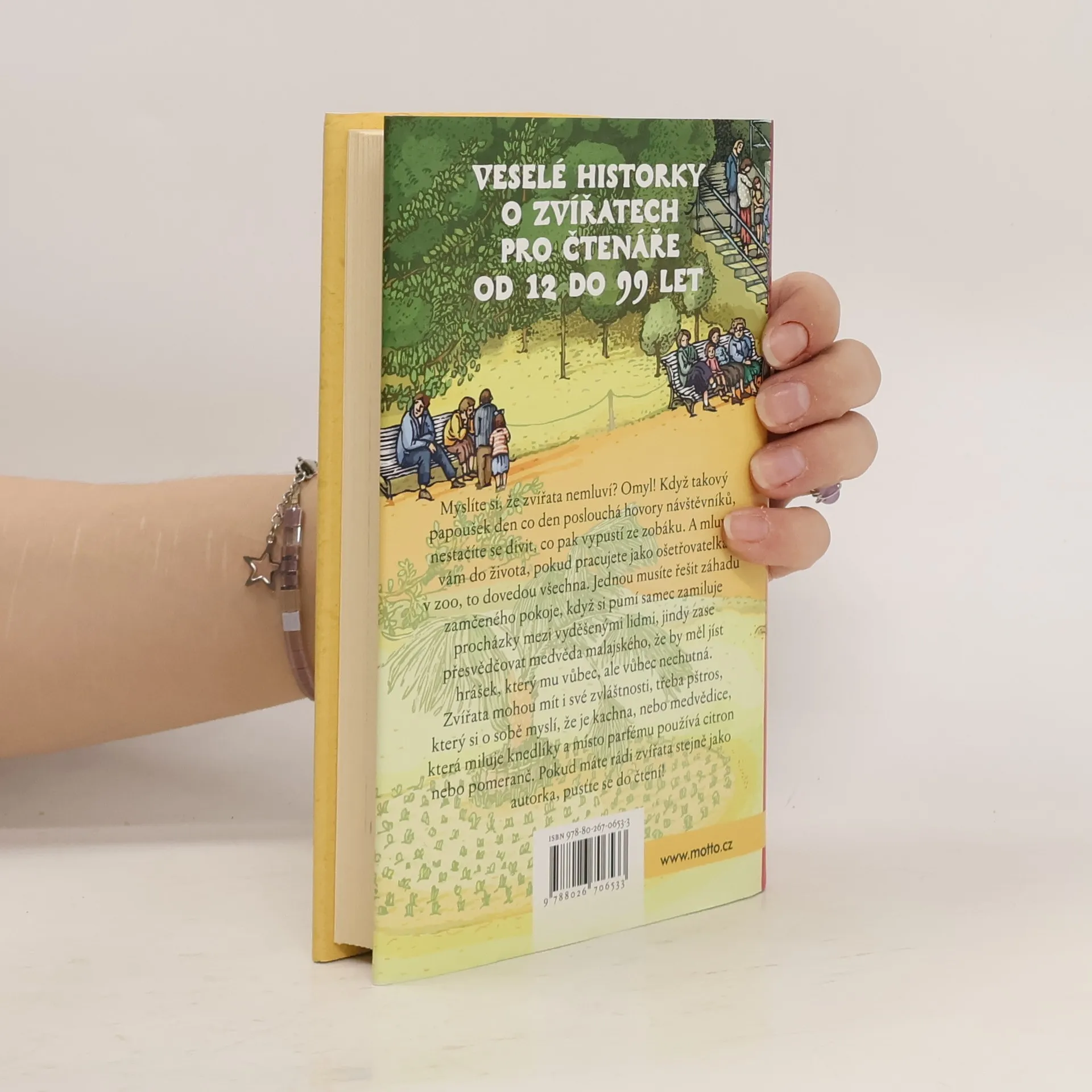 Veselé historky o zvířatech pro čtenáře od 12 do 99 let Myslíte si, že zvířata nemluví? Omyl! Když takový papoušek den co den poslouchá hovory návštěvníků, nestačíte se divit, co pak vypustí ze zobáku. A mluvit vám do života, pokud pracujete jako ošetřovatelka v zoo, to dovedou všechna. Jednou musíte řešit záhadu zamčeného pokoje, když si pumí samec zamiluje procházky mezi vyděšenými lidmi, jindy zase přesvědčovat medvěda malajského, že by měl jíst hrášek, který mu vůbec, ale vůbec nechutná. Zvířata mohou mít i své zvláštnosti, třeba pštros, který si o sobě myslí, že je kachna, nebo medvědice, která miluje knedlíky a místo parfému používá citron nebo pomeranč. Pokud máte rádi zvířata stejně jako autorka, pusťte se do čtení!