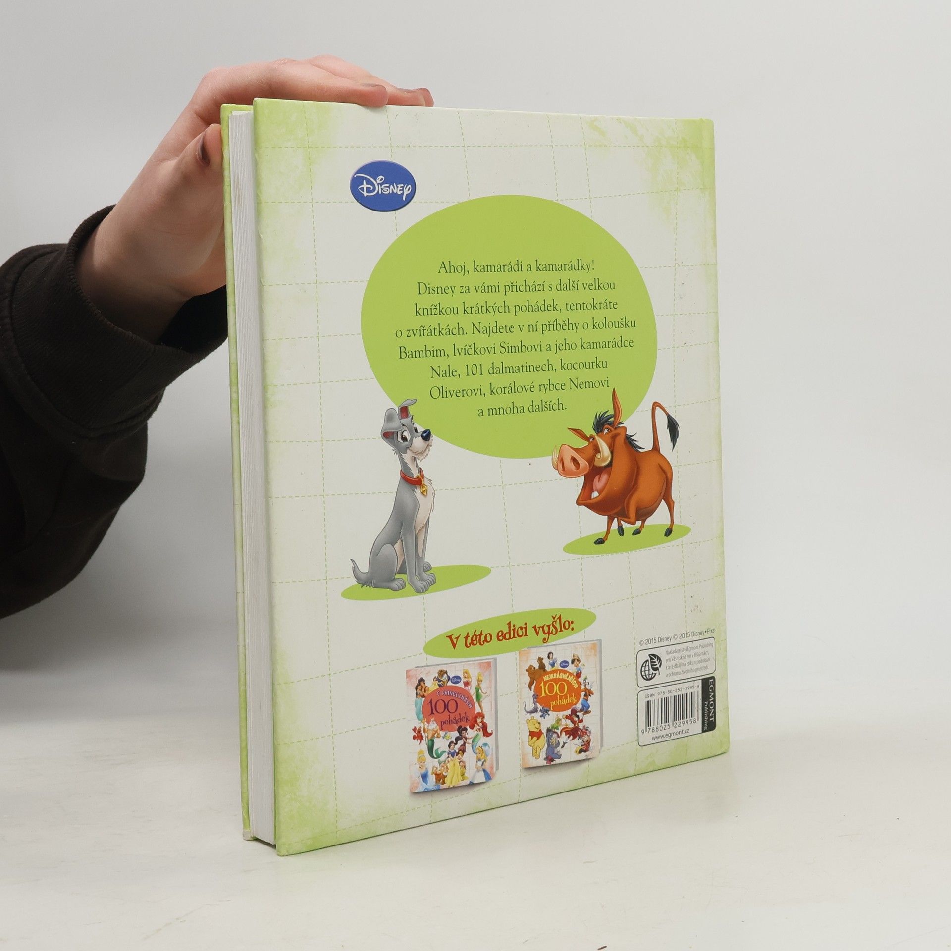 Milé děti, Disney za vámi přichází s další velkou knížkou krátkých pohádek, tentokráte o zvířátkách. Najdete v ní příběhy o koloušku Bambim, lvíčkovi Simbovi a jeho kamarádce Nale, 101 dalmatinech, kocourku Oliverovi, korálové rybce Nemovi a mnoha dalších.