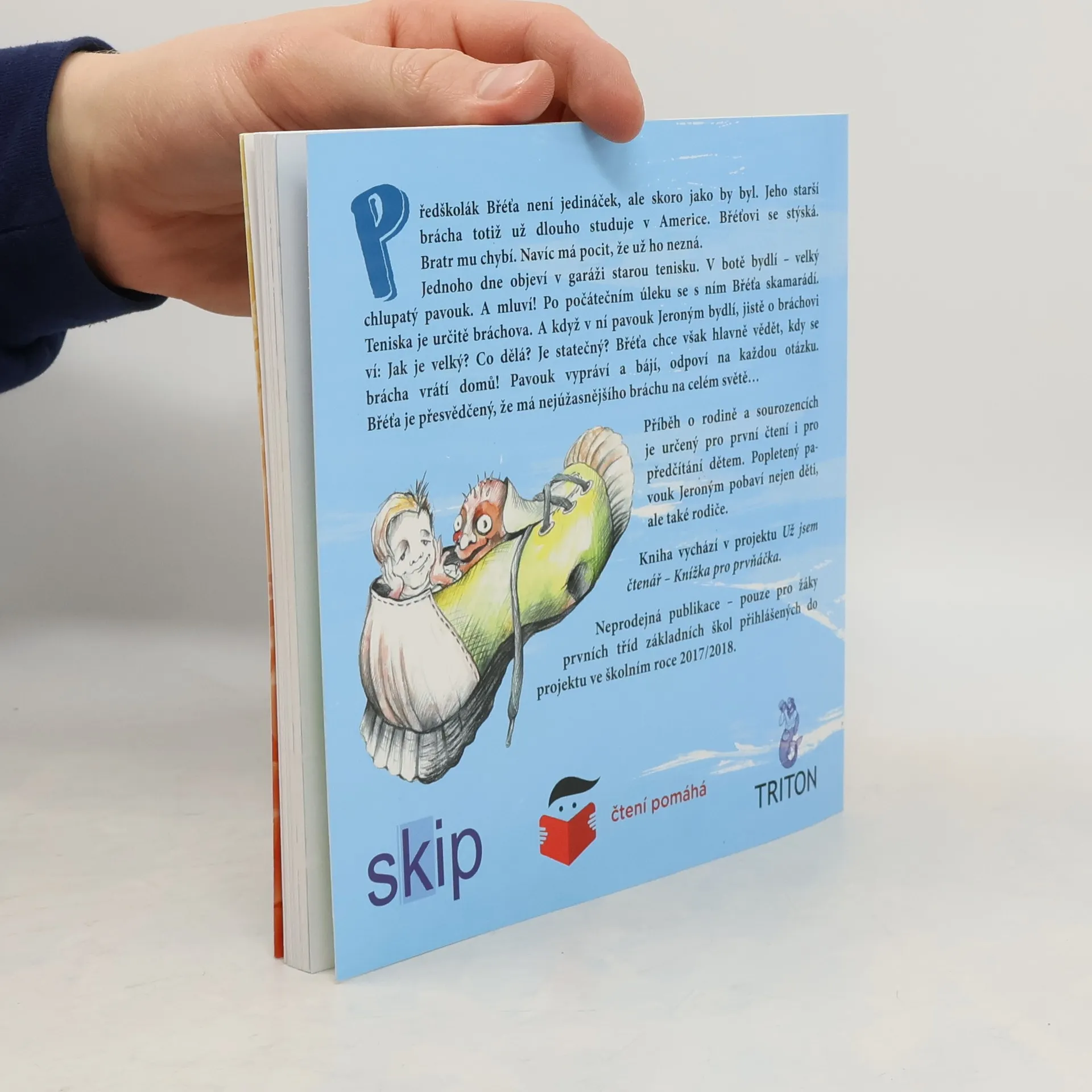 Předškolák Břéťa není jedináček, ale skoro jako by byl. Jeho starší brácha totiž už dlouho studuje v Americe a Břéťovi se stýská. Příběh o rodině a sourozencích je určený pro první čtení i pro předčítání dětem. Popletený pavouk Jeroným pobaví nejen děti, ale také rodiče.