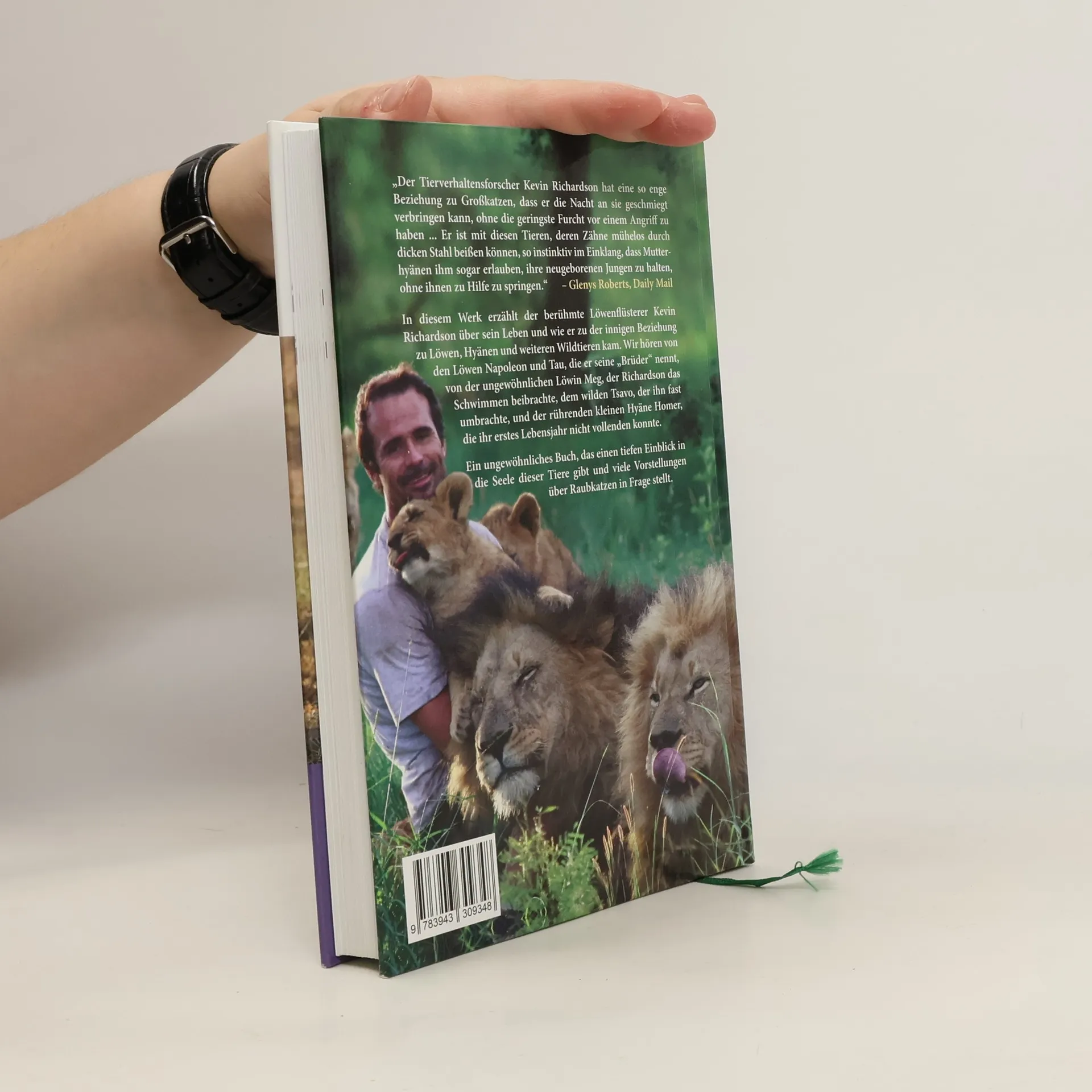In seinem ersten Buch erzählt der Löwenpfleger und Tierverhaltensforscher Richardson von seinem Leben und beruflichen Werdegang und beleuchtet seine Fähigkeit, das Vertrauen von Raubtieren wie Löwen und Hyänen zu gewinnen. Im südafrikanischen Lion Park und im Schutzgebiet Kingdom of the White Lion wurde er von einigen Löwen als Bruder akzeptiert, von anderen als Freund. Als gebürtiger Südafrikaner hat Richardson einen ungehinderten Umgang mit seinen Löwen; trotz eines Angriffs führt er seine „lebenslange Liebesaffäre mit der Gefahr“ auf seine Fähigkeit zurück, ruhig zu bleiben. Nach seinem Universitätsabschluss traf er Rodney Fuhr vom Lion Park in Johannesburg und arbeitete sich vom Konditionstrainer zum Vollzeit-Tiertrainer und Filmemacher hoch. Diese Abenteuergeschichte bietet einen fesselnden Einblick in ein junges Leben in Afrika und außergewöhnliche Erkenntnisse über die Seele der gefährlichsten Kreaturen des Kontinents. Mit zahlreichen Farbfotos. Die Rezension hebt hervor, dass Richardson eine so innige Beziehung zu seinen Großkatzen hat, dass er ohne Angst mit ihnen die Nacht verbringt und sogar von Mutterhyänen erlaubt wird, ihre Neugeborenen zu halten.