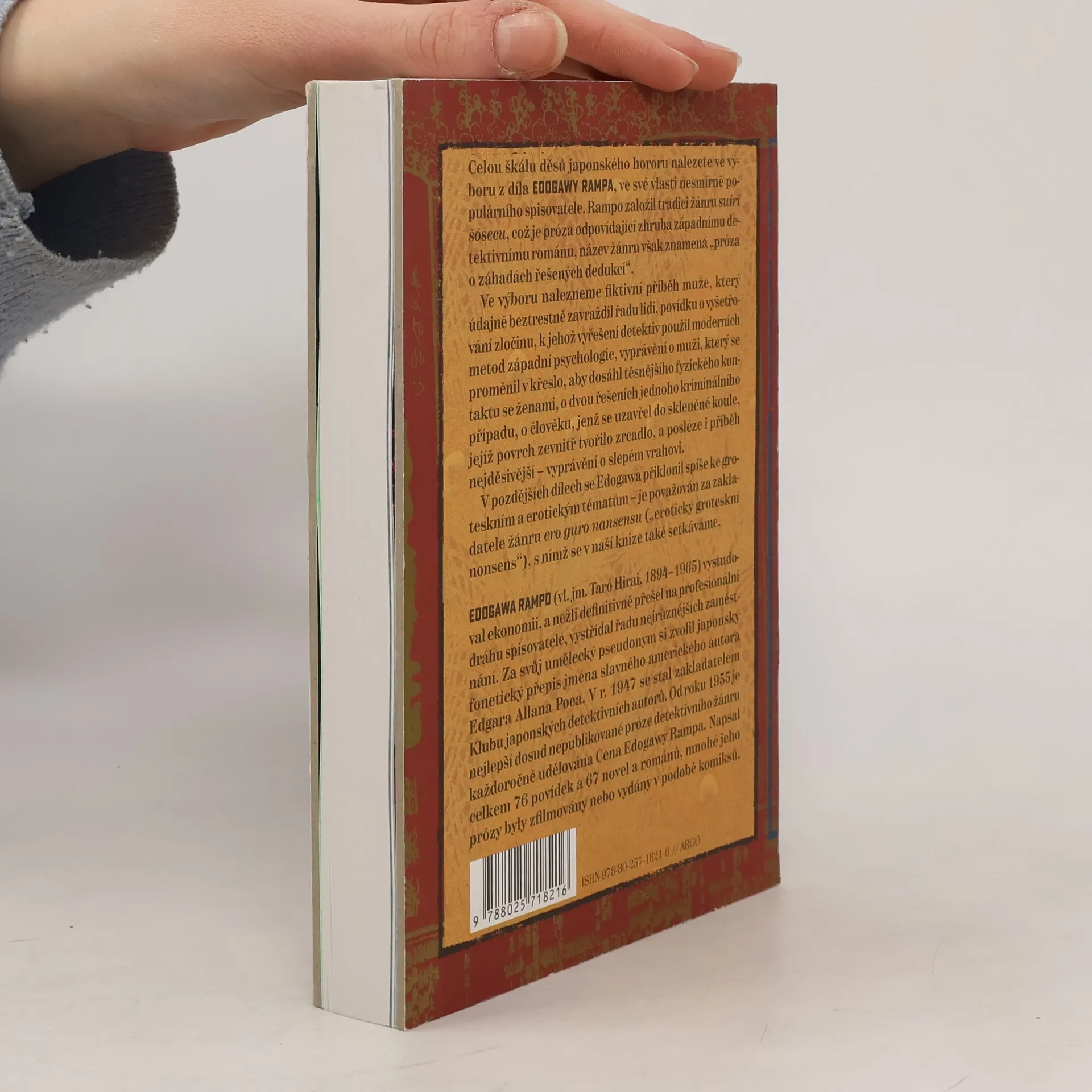 Kniha šesti povídkami a jednou novelou představuje rozmanitou tvorbu Edogawy Rampa (1894–1965), zakladatele japonské varianty detektivního žánru. Inspirace Edgarem Allanem Poem, podle kterého si autor zvolil svůj tvůrčí pseudonym a která ho vedla k psaní příběhů s tajemstvím, je zjevná i v atmosféře jeho textů. V pozdější tvorbě se přiklonil spíše ke groteskním a erotickým tématům – je považován za zakladatele žánru ero guro nansensu („erotický groteskní nonsens“). Často se pohybuje na pomezí žánrů, rád pracuje také s prvky hororu. Mnoho jeho příběhů bylo zfilmováno.