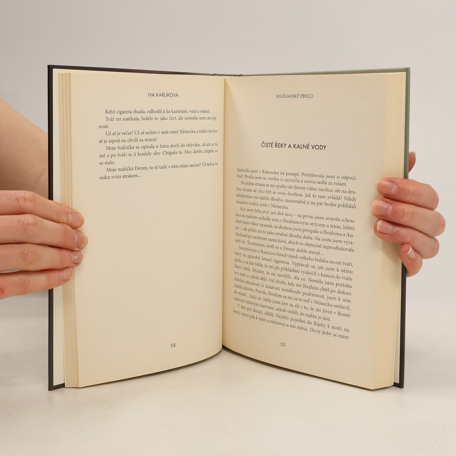 Kniha Ivy Karlíkové je ryze autobiografická. Přestože autorka nefabuluje, její vyprávění o několikaletém vztahu s bosenským muslimem je strhující a plné zvratů. V lecčems se podobá příběhu světoznámé knihy „Bez dcerky neodejdu“ – s tím rozdílem, že dějištěm Muslimského pekla je Evropa, kterou považujeme za civilizovanou a kulturní. Iva Karlíková svoji knihu uvádí slovy: „Seznámili jsme se v Německu. Já pocházela z Čech, Senad z Bosny. Byla to láska na první pohled a já si myslela, že hezčího, milejšího a pozornějšího chlapa už nikdy nenajdu. Věděla jsem, že je muslim, ale nepovažovala jsem to za překážku. Jeho ani můj život se žádným náboženským pravidlům nepřizpůsoboval. Všechno se změnilo, když se nám narodila dcera. Ze Senada se stal tyran. Až příliš pozdě jsem pochopila, že tam u nich, v Bosně mezi muslimy, je docela běžné zacházet se ženou jako s kusem hadru a odvolávat se na Alláhovu vůli. Mockrát jsem od něj chtěla odejít, ale strach, že si nás s dcerkou najde a ublíží nám, mi to nedovolil. Senad a jeho rodiče mě nakonec donutili přestěhovat se do Bosny. Ze dne na den jsem se ocitla ve světě, který byl na hony vzdálený všemu, co jsem znala. To, co jsem tam dnes a denně zažívala, se podobalo peklu. Jediné, co mě drželo při životě, byla malá dcera a mlhavá naděje, že se mi jednou podaří útéct...“