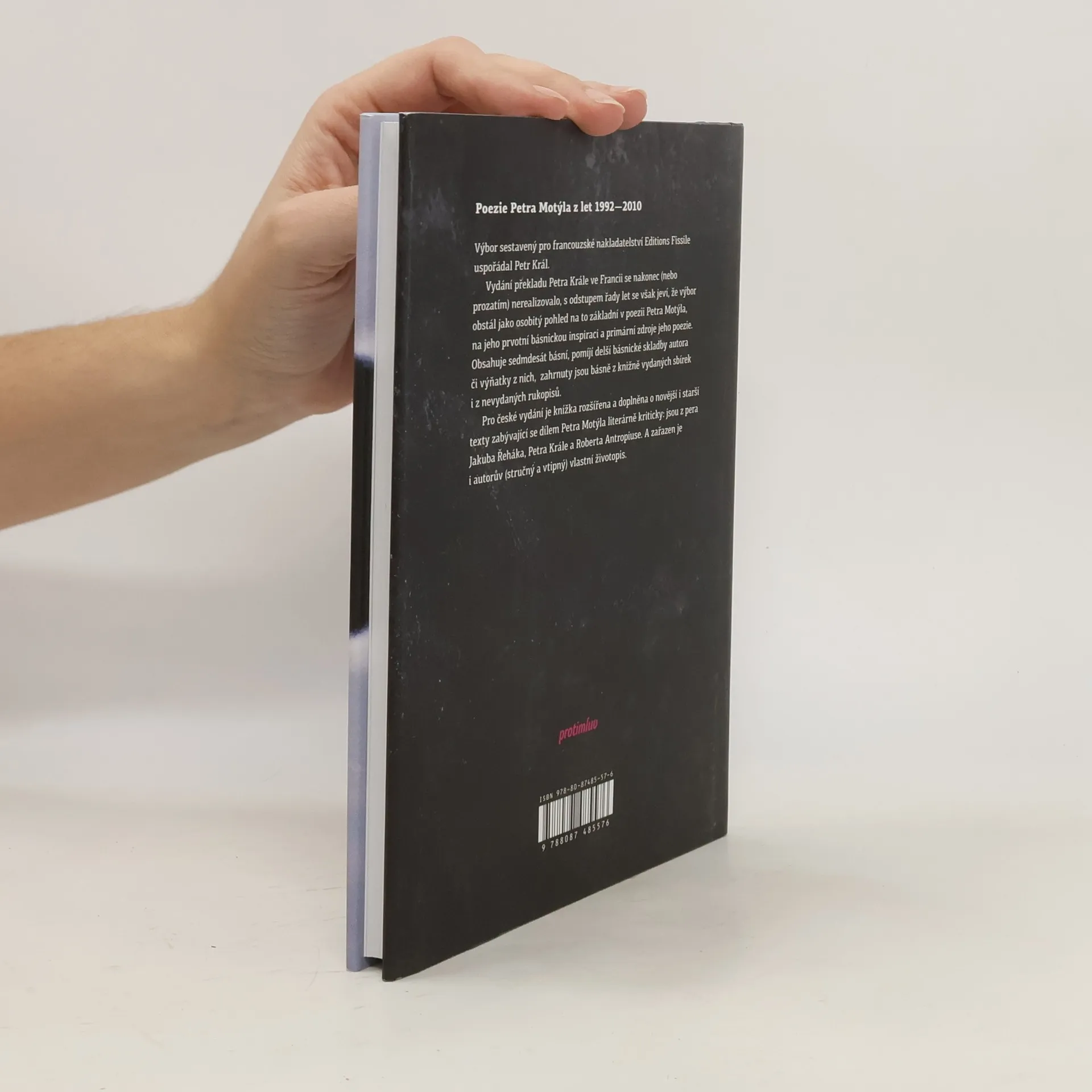 Výbor z poezie Petra Motýla z let 1992 — 2010. Knihu uspořádal a sestavil původně pro francouzské nakladatelství Editions Fissile Petr Král. Vydání překladu Petra Krále ve Francii se nakonec (nebo prozatím) nerealizovalo, s odstupem řady let se však jeví, že výbor obstál jako osobitý pohled na to základní v poezii Petra Motýla, na jeho prvotní básnickou inspiraci a primární zdroje jeho poezie. Obsahuje sedmdesát básní, pomíjí delší básnické skladby autora či výňatky z nich, přičemž zahrnuty jsou básně z knižně vydaných sbírek i z nevydaných rukopisů. Pro české vydání je knížka rozšířena a doplněna o novější i starší texty zabývající se dílem Petra Motýla literárně kriticky: jsou z pera Jakuba Řeháka, Petra Krále a Roberta Antropiuse. A zařazen je i autorův (stručný a vtipný) vlastní životopis.