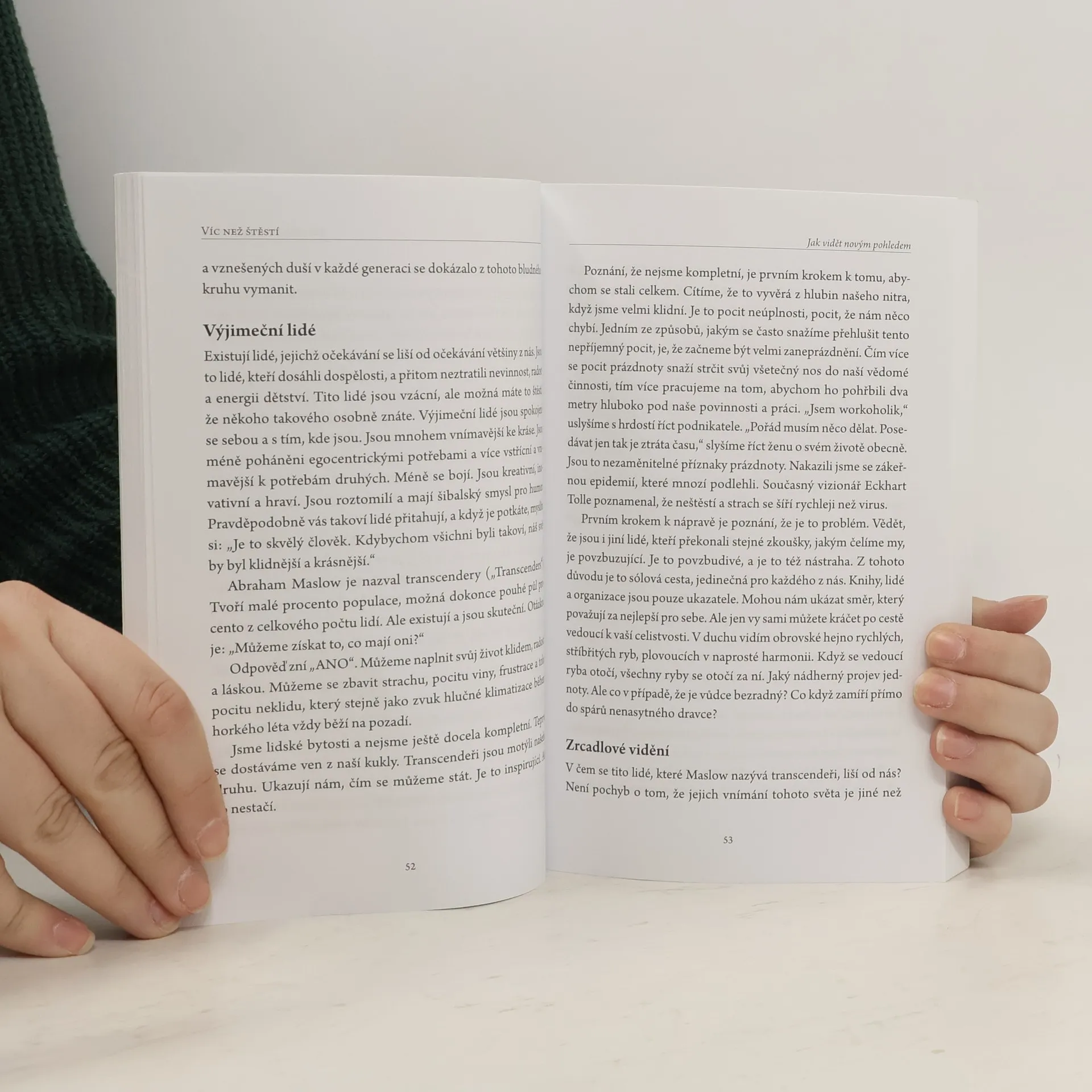Ať už jste osamělý rodič, ředitel, světec nebo hříšník, v této knize najdete úlevu od chaosu každodenního života. Víc než štěstí je dynamická kniha, která čtenáře zaujme již od první stránky. Klíč k nalezení opravdového štěstí. Víc než štěstí je praktickým průvodcem na cestě k nalezení vnitřního klidu. Poskytuje hluboký vhled a je pokladem pro každého, kdo se snaží objevit ve svém životě smysl a prosperitu. Často slýcháváme, že za peníze si štěstí nekoupíme. Ale ano, koupíme! A také sex, moc, auta a čokoládové tyčinky. Takové štěstí bohužel netrvá dlouho. Navíc to, co nás činí dnes šťastnými, nám zítra může přinést velký zármutek. Existuje však něco, co přetrvá, co je víc než štěstí… a naleznete to přímo na stránkách této objevné knihy. Cesta k pochopení podstaty života. Kniha klade otázky a nabízí jednoduchá cvičení, takže je srozumitelná pro všechny čtenáře. Čerpá z jasně reflektujících, i když odlišných zdrojů, jako jsou Upanišády (sbírka hinduistických filozofických textů), Einstein nebo Pepek námořník. Kniha Víc než štěstí odpovídá na odvěké otázky jako „Kdo jsem?“ a „Co je mým úkolem?“ a ukazuje čtenářům, jak ocenit lyrické tajemství jejich života, ne v budoucnosti, ale nyní, v tomto okamžiku.