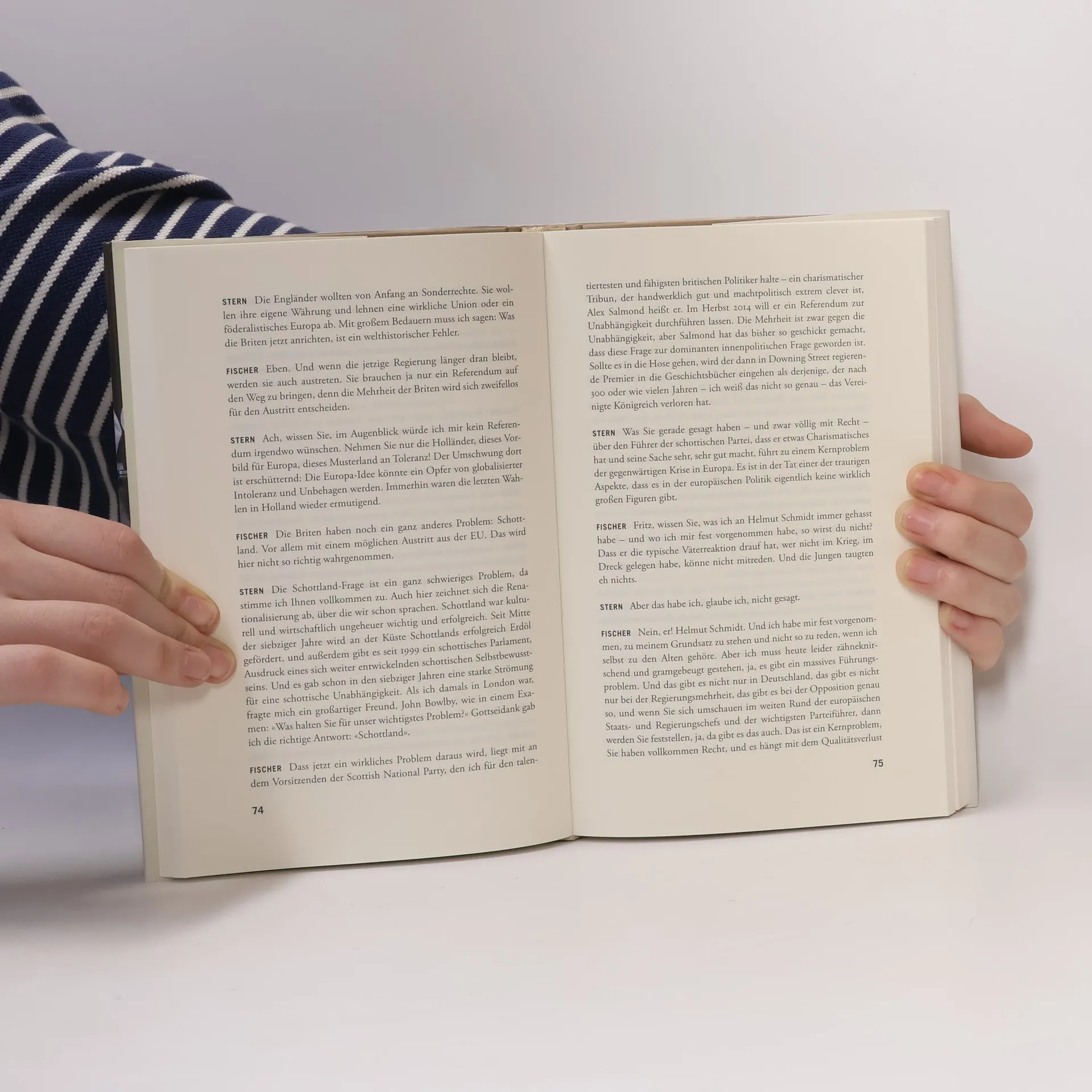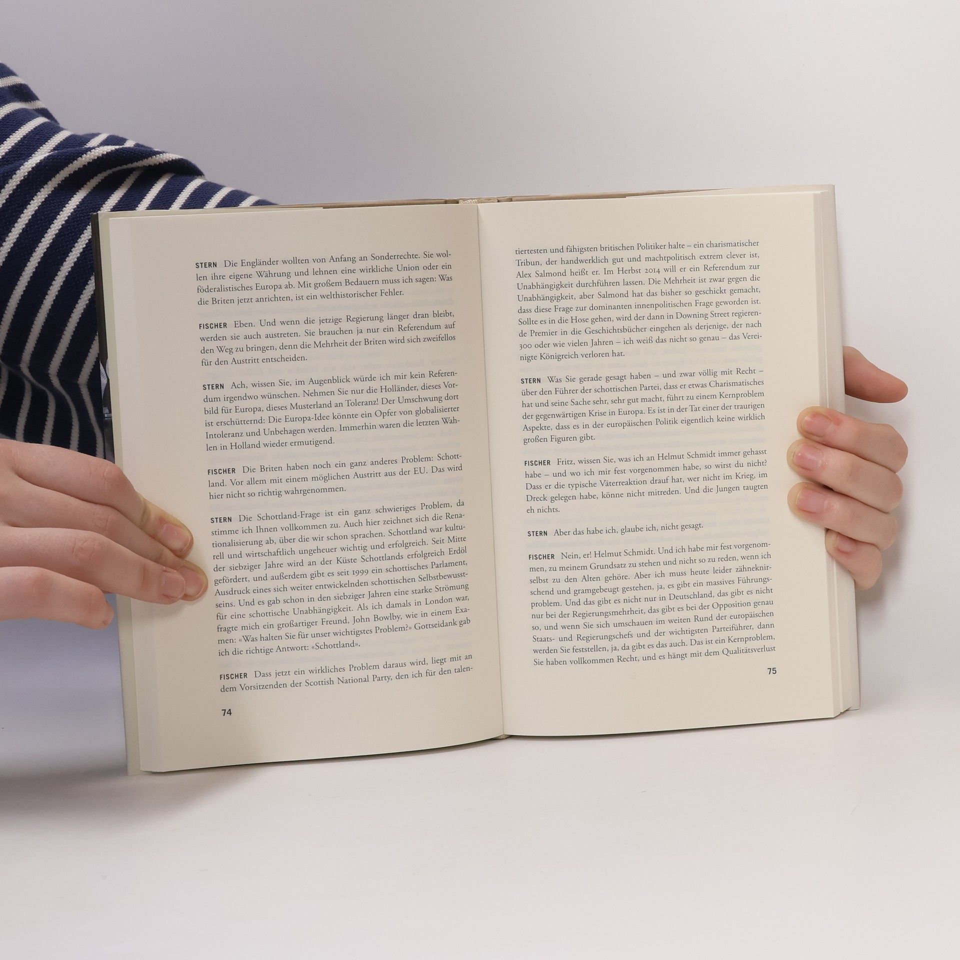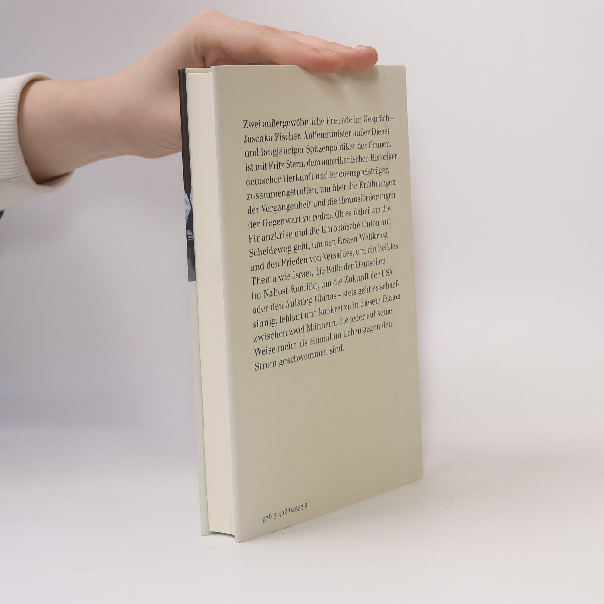 Zwei außergewöhnliche Freunde im Gespräch - Joschka Fischer, Außenminister außer Dienst und langjähriger Spitzenpolitiker der Grünen, hat sich im vergangenen Sommer mit Fritz Stern, dem amerikanischen Historiker deutscher Herkunft und Friedenspreisträger, im Wissenschaftskolleg zu Berlin getroffen, um über die Erfahrungen der Vergangenheit und die Herausforderungen der Gegenwart zu reden. Ob es dabei um die Finanzkrise und die Europäische Union am Scheideweg geht, um den Ersten Weltkrieg und den misslungenen Frieden von Versailles, um ein heikles Thema wie Israel, die Rolle der Deutschen im Nahost-Konflikt (und das Grass-Gedicht), um die Zukunft der USA und den Aufstieg Chinas - stets geht es scharfsinnig, lebhaft und konkret zu in diesem Dialog zwischen zwei Männern, die jeder auf seine Weise mehr als einmal im Leben gegen den Strom geschwommen sind.
