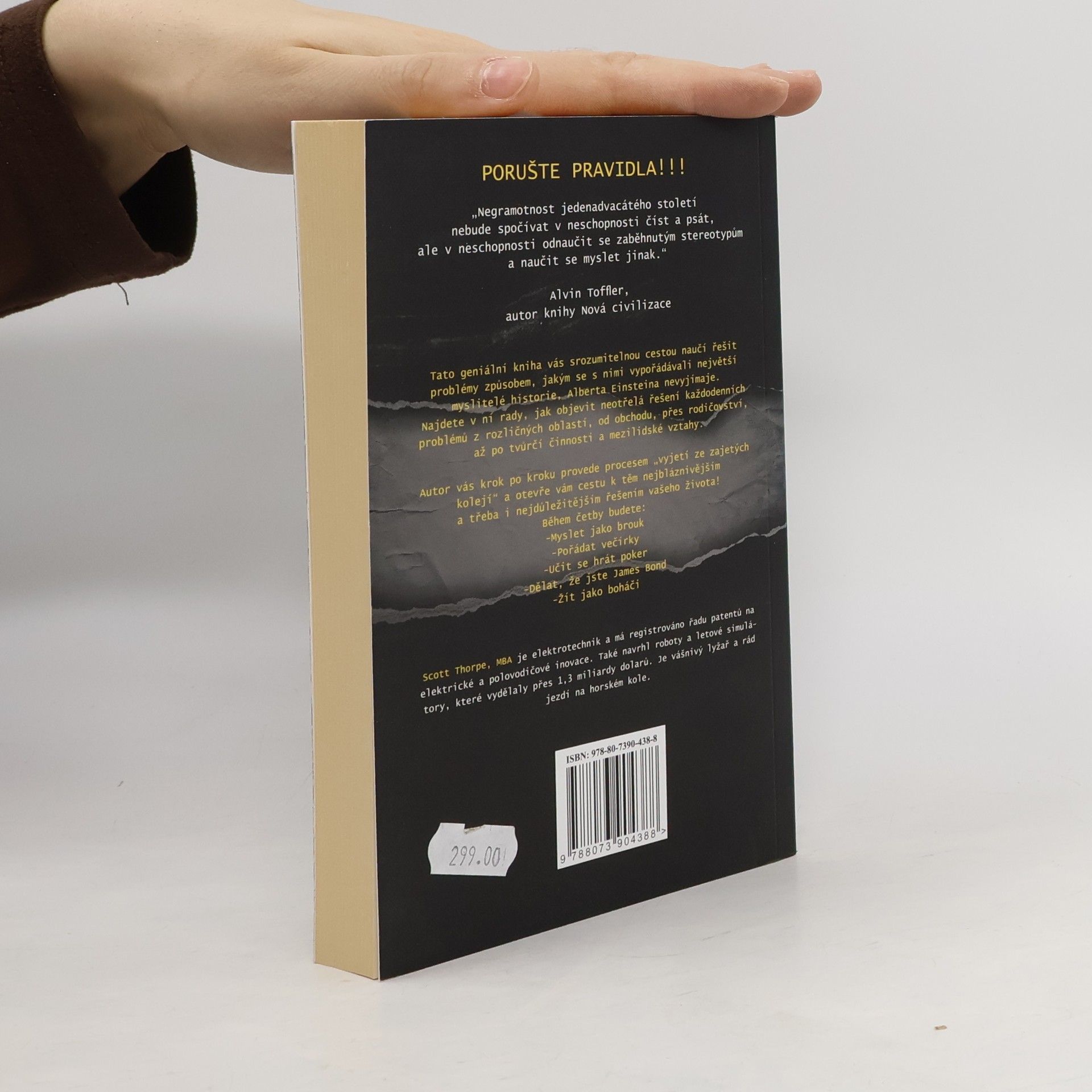 Objevte jednoduchý způsob, jak obejít pravidla, a odhalte v sobě skrytého génia. Tato geniální kniha vás srozumitelnou cestou naučí řešit problémy způsobem, jakým se s nimi vypořádávali největší myslitele historie, Alberta Einsteina nevyjímaje. Najdete v ní rady, jak objevit neotřelá řešení každodenních problémů z rozličných oblastí, od obchodu, přes rodičovství, až po tvůrčí činnosti a mezilidské vztahy. Autor vás krok po kroku provede procesem „vyjetí ze zajetých kolejí“ a otevře vám cestu k těm nejbláznivějším a třeba i nejdůležitějším řešením vašeho života! Během četby budete: - Myslet jako brouk - Pořádat večírky - Učit se hrát poker - Dělat, že jste James Bond - Žít jako boháči