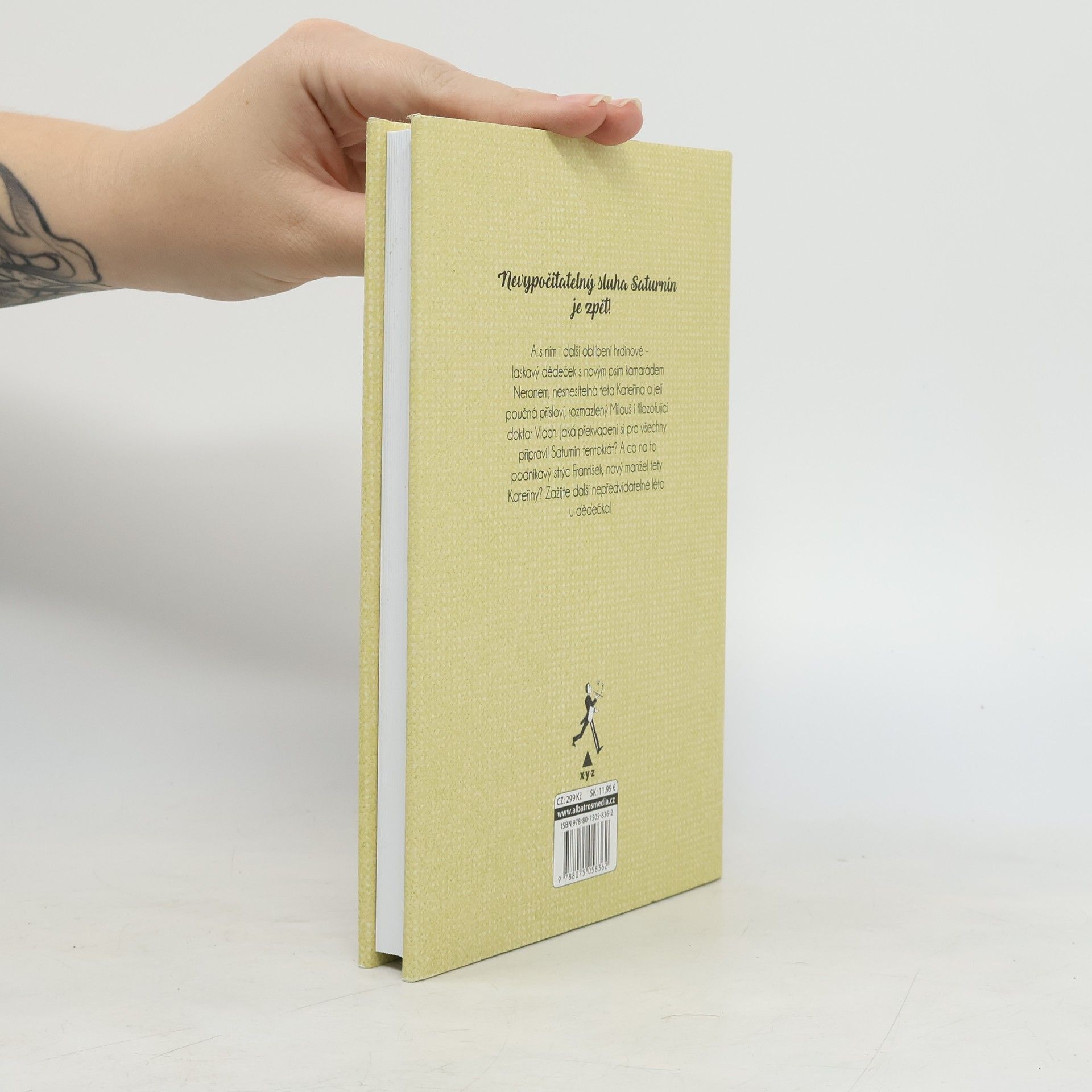 „Slavná humoristická kniha, která baví již několik generací čtenářů, pokračuje!“ Nevypočitatelný sluha Saturnin je zpět! A s ním i další oblíbení hrdinové – laskavý dědeček s novým psím kamarádem Neronem, nesnesitelná teta Kateřina a její poučná přísloví, rozmazlený Milouš i filozofující doktor Vlach. Jaká překvapení si pro všechny připravil Saturnin tentokrát? A co na to podnikavý strýc František, nový manžel tety Kateřiny? Zažijte další nepředvídatelné léto u dědečka!