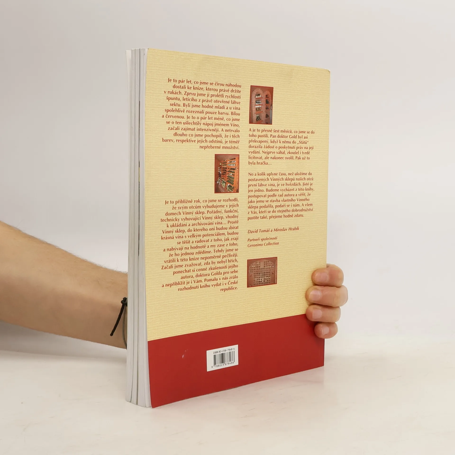 Kniha poskytuje mnoho užitečných informací, ze kterých se mohou poučit jak vinaři tak milovníci vína vlastnící svůj vlastní sklípek. První polovina knihy se zabývá převážně stavebními problémy. Druhá část knihy je věnovaná výběru a nákupu vína, otázkám jeho skladování, výběru pomůcek ke správnému podávání vína, vedení sklepní knihy, pořádání řízených degustací, vertikálních či horizontálních a řadě dalších užitečných rad začínajícím, či pokročilým milovníkům vína.... celý text