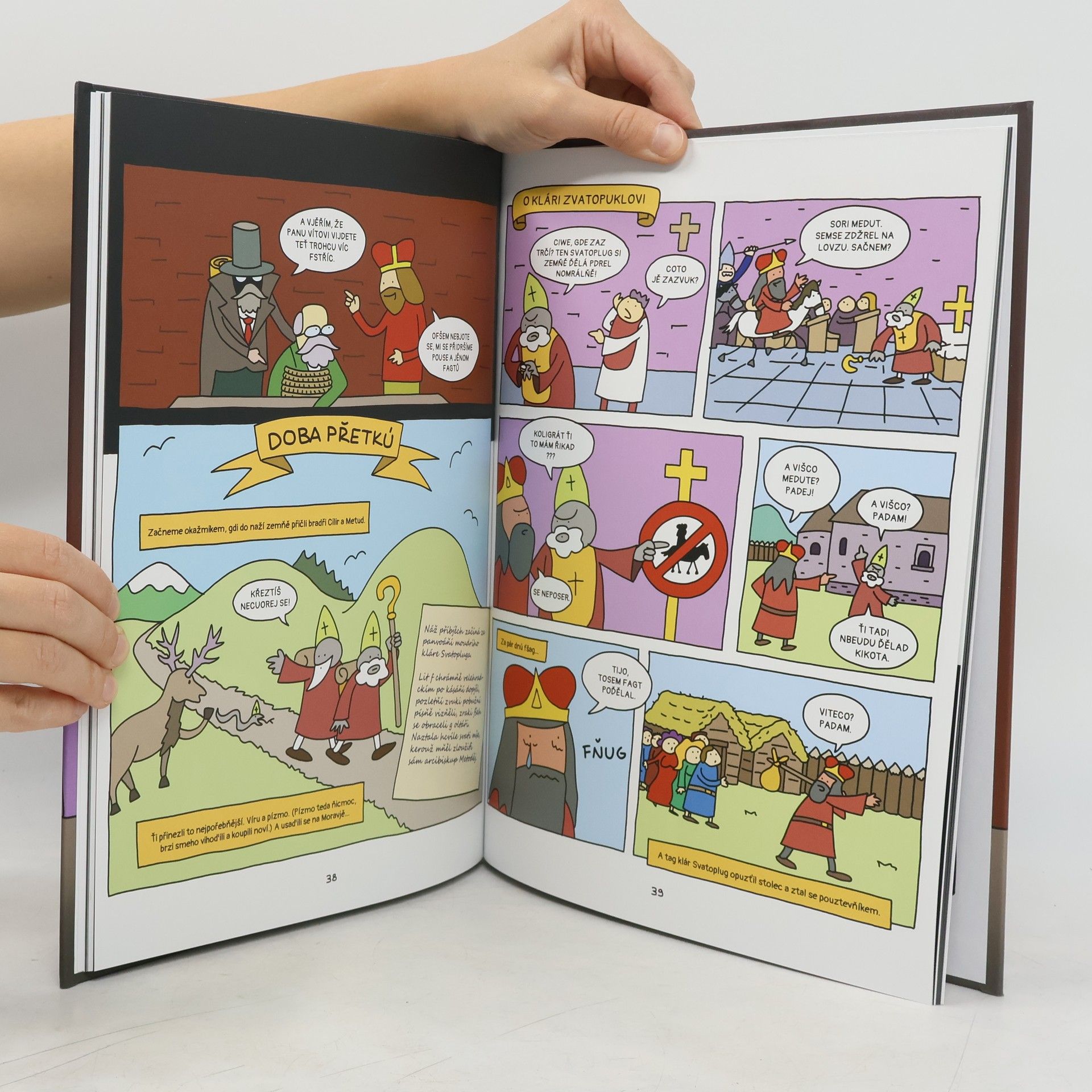 Alois Jirásek to bude mít těžké, ale pravda musela spatřit světlo světa. Chyby v jeho Starých pověstech českých je třeba uvést na pravou míru! Chcete vědět, jak to bylo s praotcem Čechem, Krokem a jeho dcerami nebo jak doopravdy proběhla Dívčí válka? Vše vám pomohou pochopit hlavní hrdinové příběhu Zmikund Lucembruskí, paraotec Čech, kornikář Kosmos, Franťišeg Křišíg a svatí Václaf a další. Poznáte také, že z pera předsedy Histrickího ústafu, pana Jaze, vzešlo fenomenální dílo nebývalého významu a kvality, plné zábavy a poučení. Ostatně, jako vždy. SE STIM SMIŘte! První kniha z dílny Histrickýho ústafu, která má děj od začátku do konce. Praha 1893. F hlavjě spičovatele hiztrickích románú Ajolse Jirsáka se roďí nová kňiha, která má moc změnit ďějini čezkíh zemí. Elektrickí riťíř Franťišeg Křišíg fšag ví, jakí nebezpečí toto ďílo představuje pro přítomnozt i bduocnost našeho národa. Roshotne se tuďíš, že učiňí fše proto, abi Starí povjezťi čezkí tag, jag je Jiráseg nacpal, ňigdi nezpatřili svjětlo svjěta. Se zkupinou vjěrníh přátel napříč hiztorjí začne uzkutečňovad nebespeční plán. Ale huziťi ňigdi nezpí!