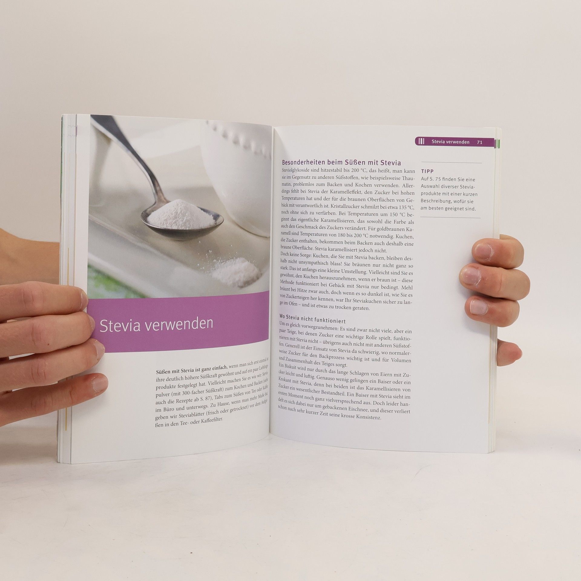 Die Stevia-Pflanze ist in Südamerika beheimatet und wird dort seit Jahrhunderten als natürliches Süßungsmittel verwendet. Die enthaltenen Steviolglykoside haben - je nach Sorte und Produkt - eine bis zu 300-fache Süßkraft im Vergleich zum herkömmlichen Haushaltszucker. Dabei ist Stevia kalorienfrei, lässt den Blutzucker nicht ansteigen und wirkt nicht kariogen. Somit bieten die Extrakte der Stevia-Pflanze eine natürliche - und vor allem gesunde - Alternative zum Haushaltszucker und künstlichen Süßstoffen. Daher sind sie ein gesunder Zuckerersatz bei Diabetes, Übergewicht oder Fruktose-Unverträglichkeit und eine natürliche Süße für alle, die auf ihre Gesundheit achten wollen. Der Ratgeber liefert einen kompakten Überblick zur Herkunft und den Vorzügen von Stevia, zeigt Anwendungsmöglichkeiten und gibt praktische Hilfestellung bei der Verwendung von Stevia. Über 50 zuckerfreie Rezepte mit Hinweisen auf fruktosearme Varianten runden den Ratgeber ab.