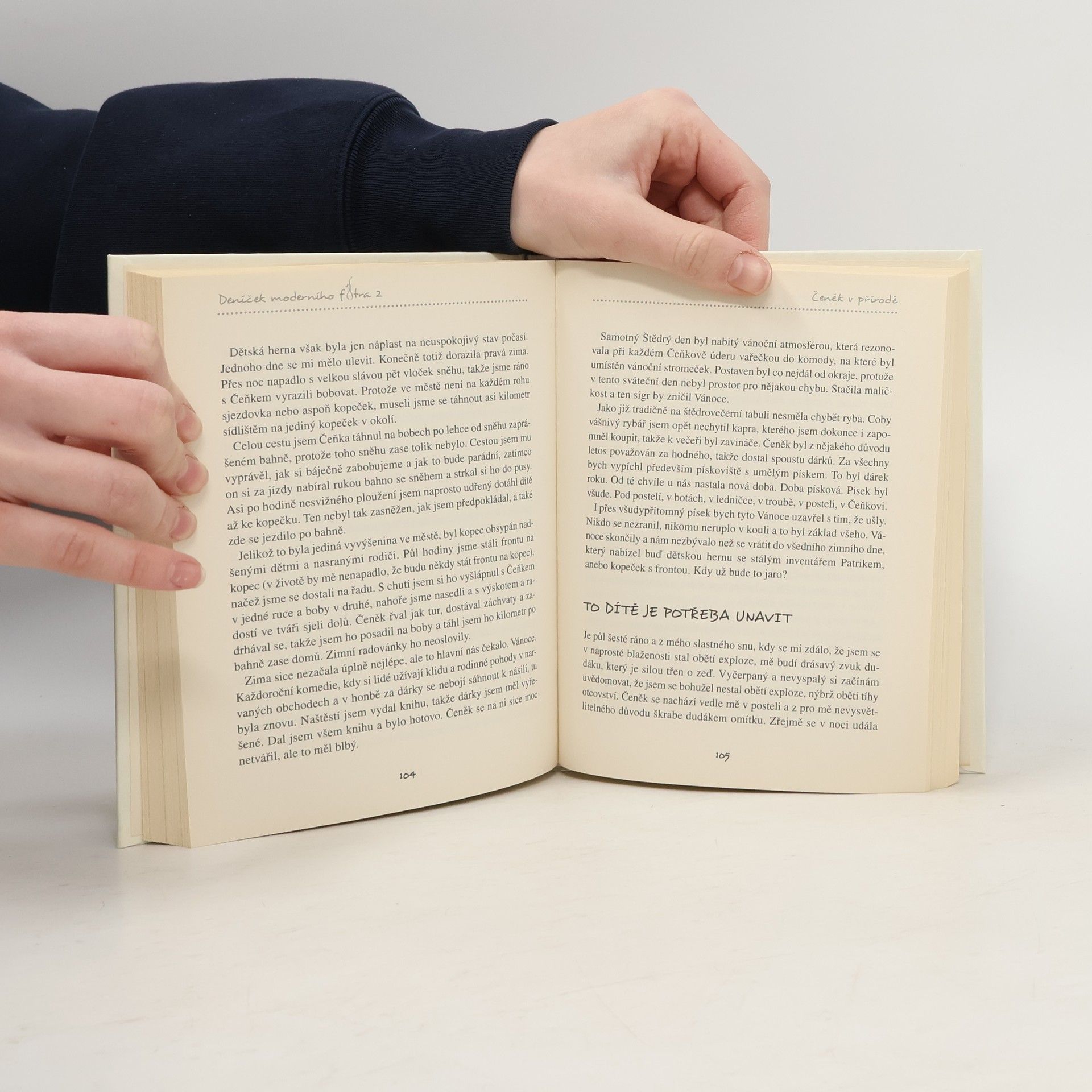 Jak to může vypadat, když se muž ocitne na mateřské dovolené? Deníček moderního fotra vznikl na základě úspěšného blogu, který Dominik Landsman založil s příchodem prvního dítěte. Věren názvu popisuje zážitky, situace a strasti obyčejného „chlápka“ odvedle, kterému se narodil první syn. Zprvu nezúčastněný fotr, který miminko zažívá trochu zdálky, se brzy stává „otcem na mateřské dovolené“ a s tím také začíná boj o přežití obou a zachování rodinného blaha. Nutno říct, že synek Čeněk je dítě velmi aktivní a také destruktivní. Každý Čeňkův pokrok většinou odnese vyčerpaný tatínek jizvami na duši i na těle, ale hlavní je, že dítě prospívá, ať už to stojí, co to stojí. V sympaticky drsňácké a humorné výpovědi moderního fotra se autor nebojí svěřit se s lecjakými trably a přináší výjimečný pohled současného muže na situace, které obvykle zažívají spíše ženy.