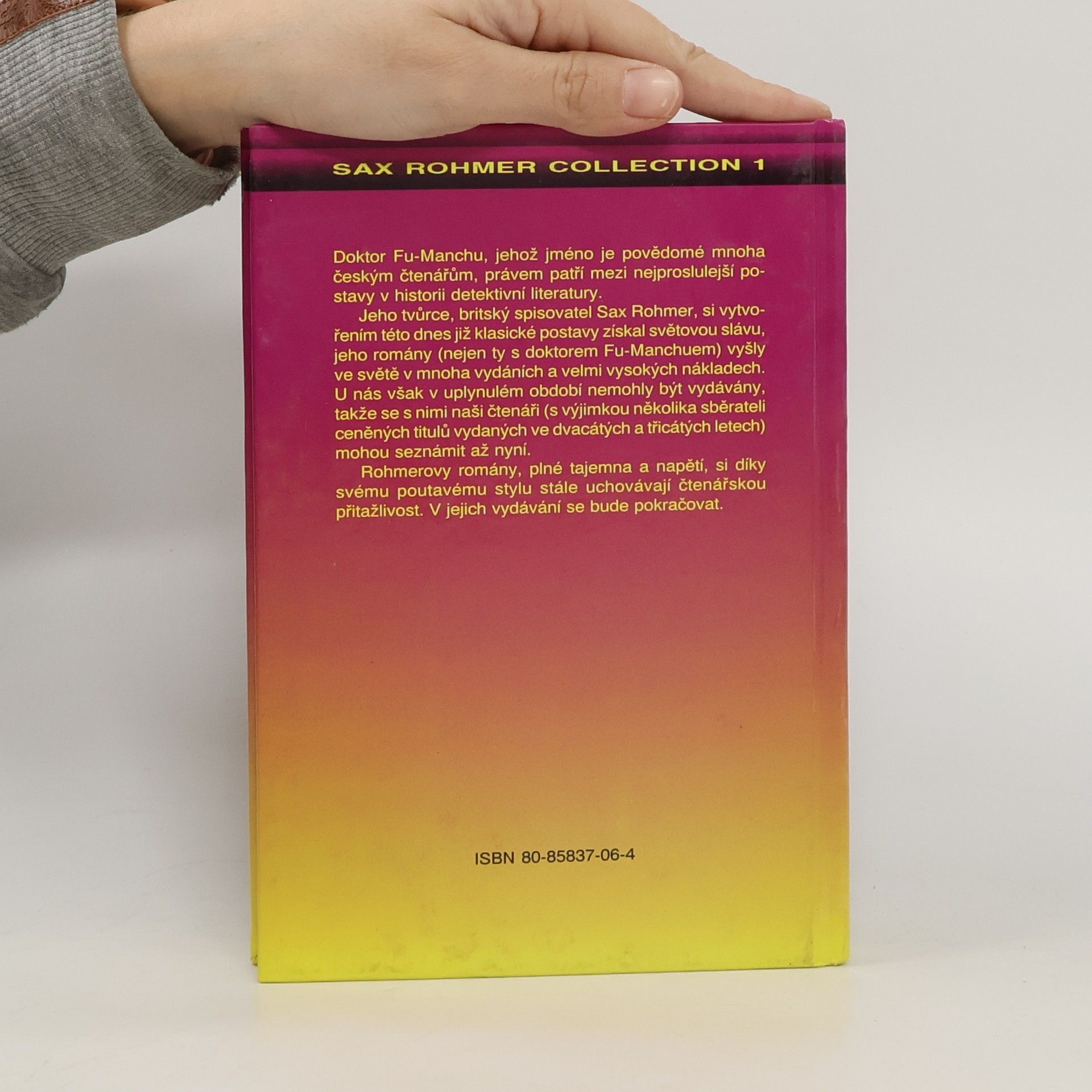 Doktor Fu - Manchu, jehož jméno je povědomé mnoha českým čtenářům, právem patří mezi nejproslulejší postavy v historii detektivní literatury. Jeho tvůrce, britský spisovatel Sax Rohmer, si vytvořením této dnes již klasické postavy získal světovou slávu, jeho romány (nejen ty s doktorem Fu - Manchuem) vyšly ve světě v mnoha vydáních a velmi vysokých nákladech. U nás však v uplynulém období nemohly být vydávány, takže se s nimi naši čtenáři (s výjimkou několika sběrateli ceněných titulů vydaných ve dvacátých a třicátých letech) mohou seznámit až nyní. Rohmerovy romány, plné tajemna a napětí, si díky svému poutavému stylu stále uchovávají čtenářskou přitažlivost. V jejich vydávání se bude pokračovat.