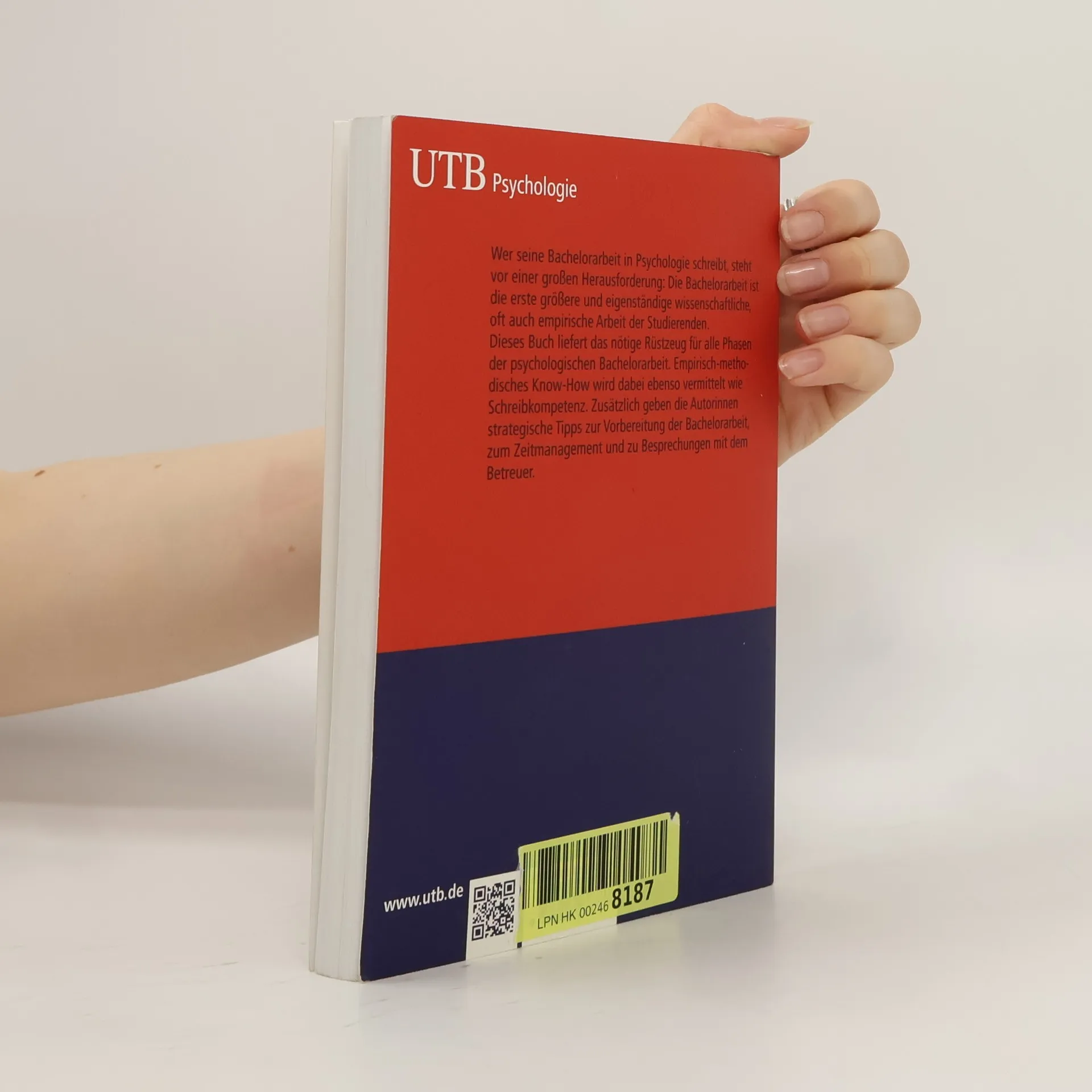 Bachelorarbeit in Psychologie – so gelangen Sie Schritt für Schritt ans Ziel! Wer seine Bachelorarbeit in Psychologie schreibt, steht vor einer großen Herausforderung: Die Bachelorarbeit ist die erste größere und eigenständige wissenschaftliche Arbeit der Studierenden und stellt einen Meilenstein innerhalb des Studiums dar. Dieses Buch sorgt dafür, dass dabei nichts schief geht. Es liefert das nötige Rüstzeug für alle Phasen der Bachelorarbeit. Step-by-step vermitteln die Autoren empirisch-methodisches Know-How und zeigen, wie die Schreibkompetenz systematisch gefördert werden kann. Studierende erhalten strategische Tipps zur Vorbereitung der Bachelorarbeit. Sie erfahren, wie Zeitmanagement konkret gelingt und was bei den Besprechungen mit dem Betreuer zu beachten ist. Extra ausgewiesene Schlüsselbegriffe, Merksätzen, Beispiele und Arbeitsanleitungen machen das Buch leicht zugänglich und sorgen für eine schnelle Orientierung. Ein unverzichtbarer Begleiter für Ihre studentische Karriere!