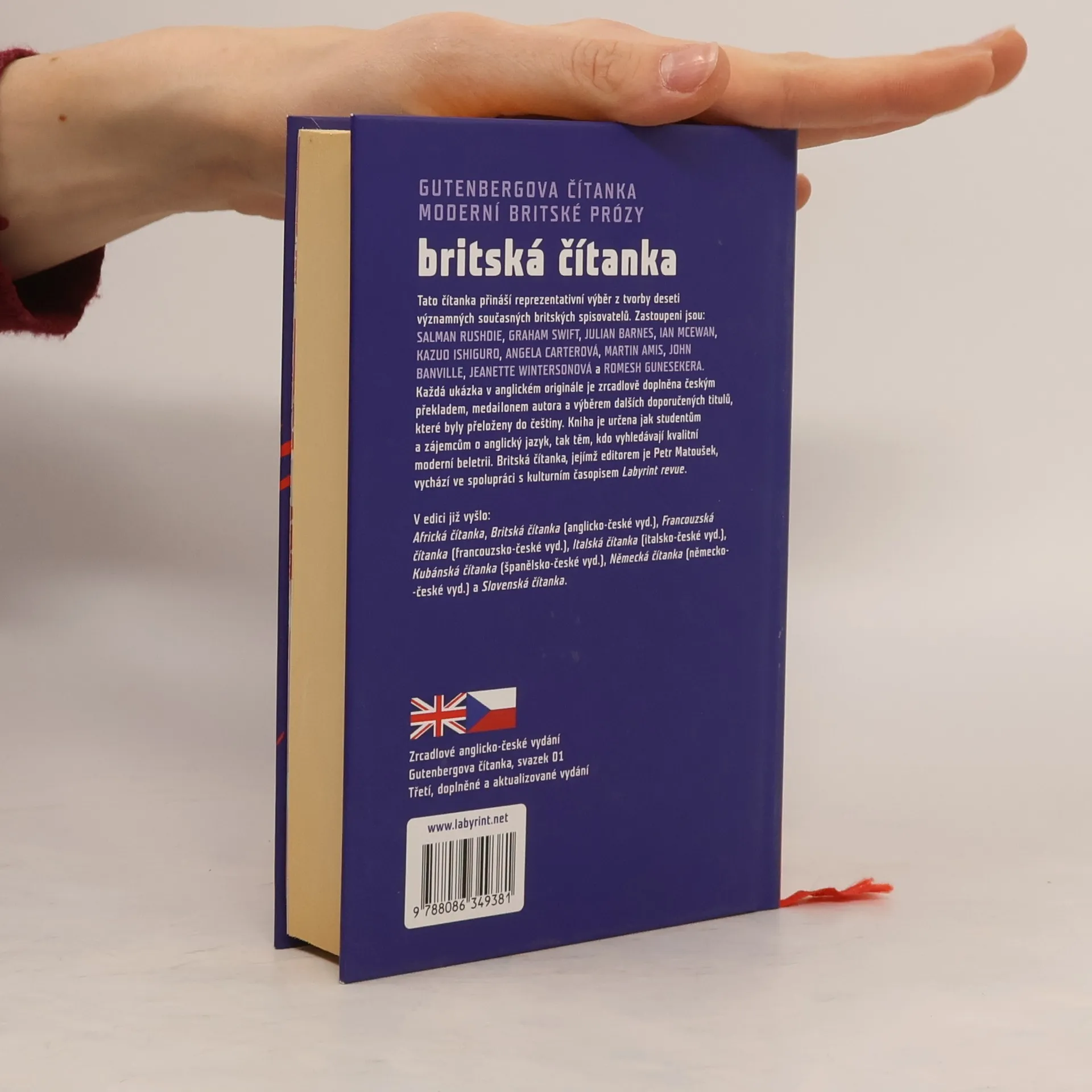 Gutenbergova čítanka současné britské prózy. Reprezentativní výběr z tvorby deseti významných současných britských prozaiků. Každá ukázka v anglickém originále je zrcadlově doplněna českým překladem, medailony autorů a výběrem dalších doporučených titulů, které byly v posledních desetiletích přeloženy do češtiny. Kniha je určena jak studentům a zájemcům o anglický jazyk, tak i těm, kdo vyhledávají kvalitní moderní beletrii. Originální texty: Salman Rushdie, Graham Swift, Julian Barnes, Ian McEwan, Kazuo Ishiguro, Angela Carter, Martin Amis, John Banville, Jeanette Winterson, Romesh Gunesekera. 3., doplněné a aktualizované vyd.