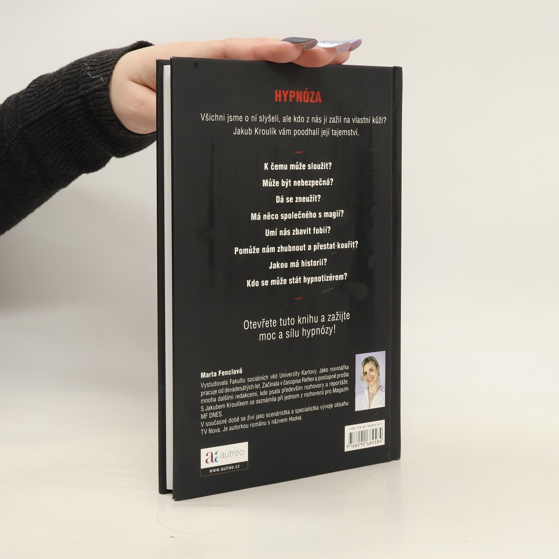 Rozhovor Marty Fenclové s Jakubem Kroulíkem HYPNÓZA Všichni jsme o ní slyšeli, ale kdo z nás ji zažil na vlastní kůži? Jakub Kroulík vám poodhalí její tajemství. … K čemu může sloužit? Může být nebezpečná? Dá se zneužít? Má něco společného s magií? Umí nás zbavit fobií? Pomůže nám zhubnout a přestat kouřit? Jakou má historii? Kdo se může stát hypnotizérem? … Otevřete tuto knihu a zažijte moc a sílu hypnózy!