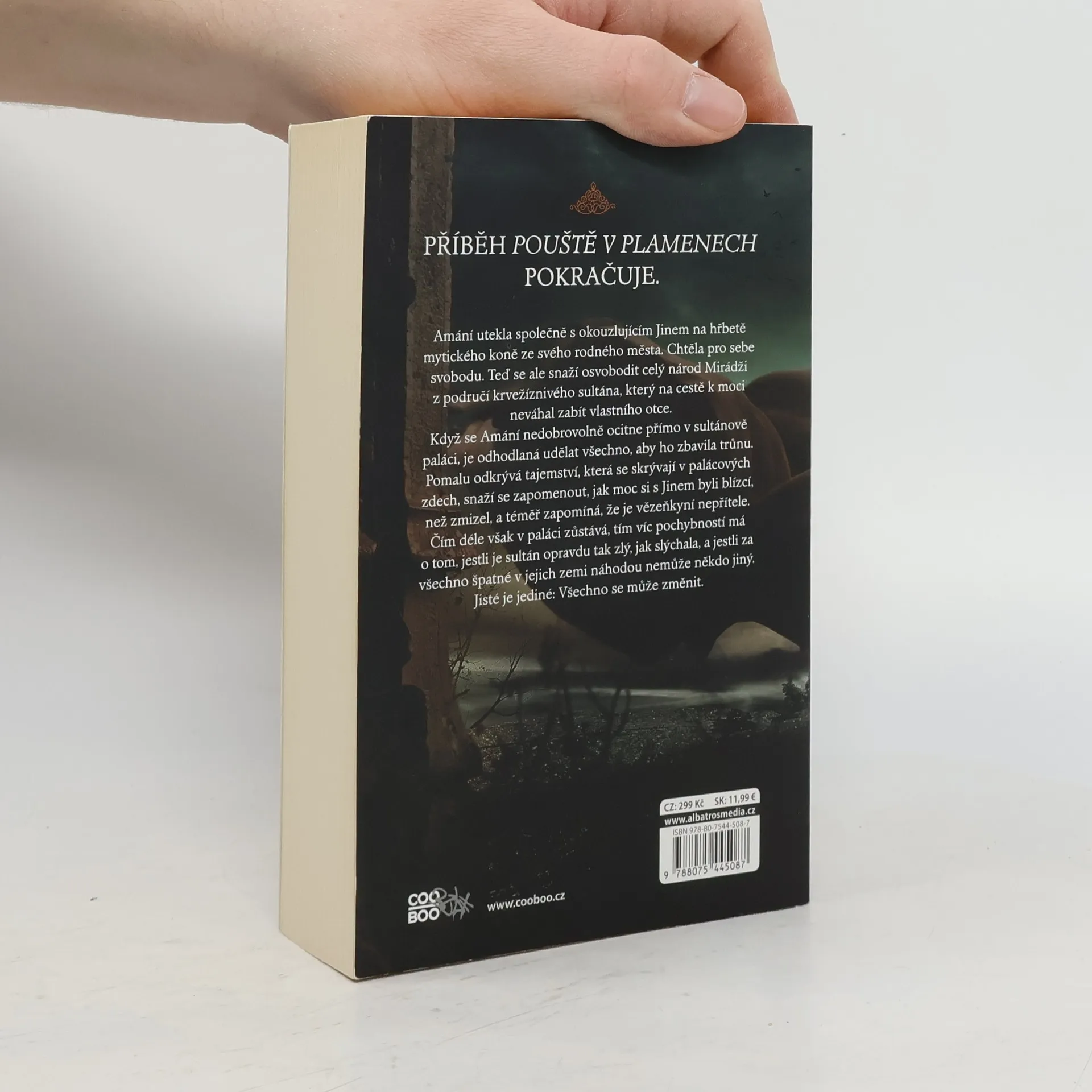 Amání utekla ze svého rodného města na konci světa společně se záhadným cizincem Jinem na hřbetě mytického koně. Tehdy šla jen za svou vlastní svobodou, ale nyní bojuje za svobodu celého Mirádži. Tomu panuje krvežíznivý sultán, který neváhal zavraždit svého otce, by se dostal na trůn. Amání se ocitne jako zajatkyně přímo v sultánově paláci a je odhodlána udělat vše, aby ho sesadila. Zatímco se pídí po tajných informacích na jeho dvoře, snaží se zapomenout, že Jin zmizel, zrovna když to vypadalo, že k sobě mají opravdu blízko, - a taky že je vlastně vězenkyní nepřítele. Čím dele však v paláci je, tím víc pochybuje, jestli je sultán opravdu tak hrozný, jak jí tvrdili, a přemýšlí, kdo je v její rodné vlastně ten zrádce.