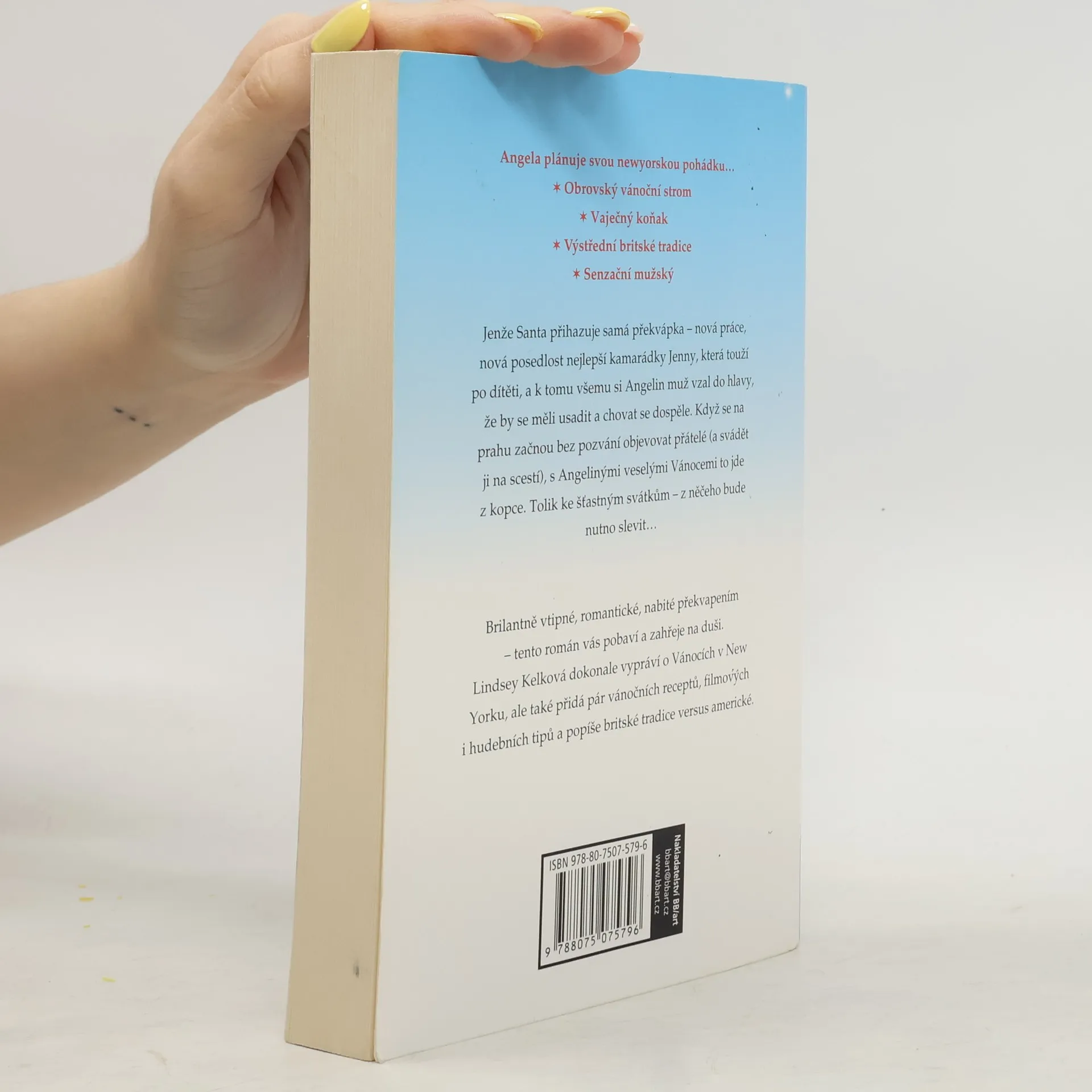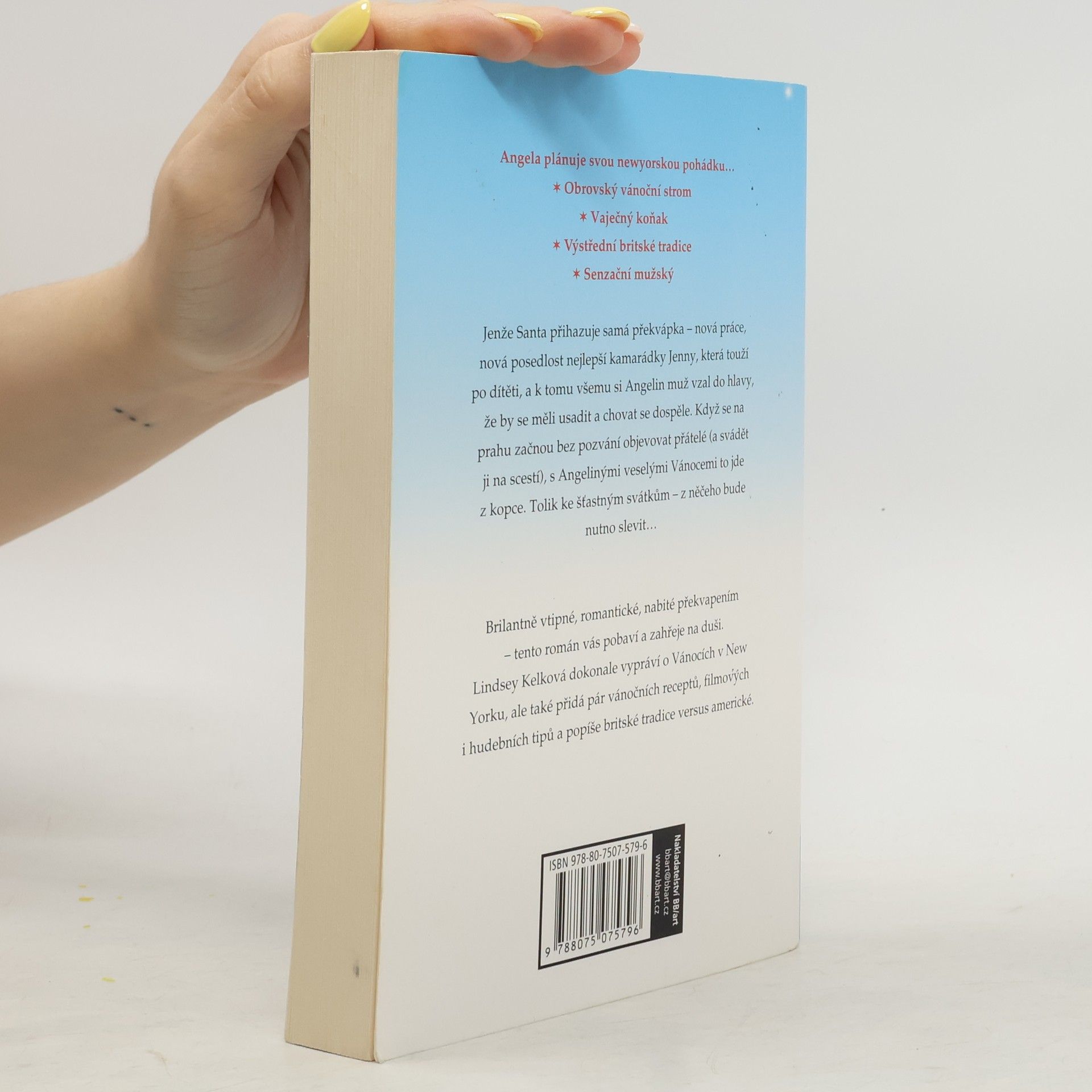 Angela plánuje svou vlastní newyorskou pohádku… * Obrovský vánoční strom * Vaječný koňak * Výstřední britské tradice * Senzační mužský Jenže Santa přihazuje samá překvápka – nová práce, nečekaná posedlost nejlepší kamarádky Jenny, která touží po dítěti, a odhodlání jejího mužského, že by se měli chovat dospěle a usadit se. Když se na prahu začnou bez pozvání objevovat přátelé (a svádět ji na scestí), s Angelinými veselými Vánocemi to jde z kopce. Tolik ke šťastným svátkům – z něčeho bude nutno slevit…