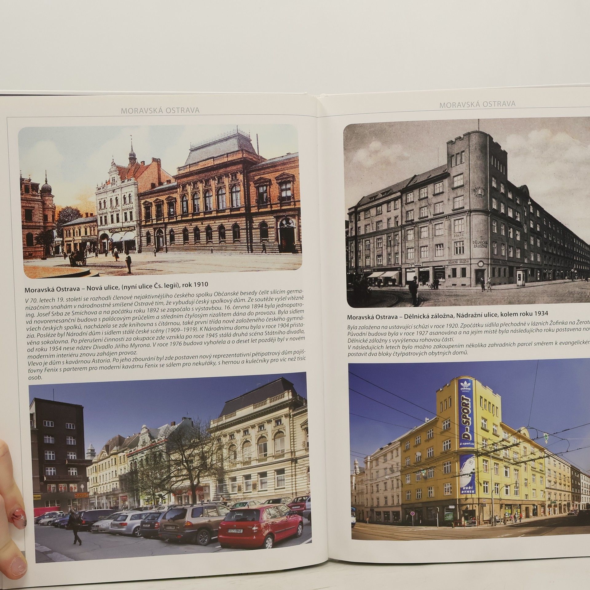 Kniha Ostrava včera a dnes je skvělá velká obrazová publikace, která nabízí unikátní pohledy srovnávající historickou a současnou podobu téže lokality. Tato kniha překvapí i pamětníky, mladší čtenáře seznámí s vývojem města. Do knihy je jako samostatná příloha vložena velká mapa Ostravy z r.1920.