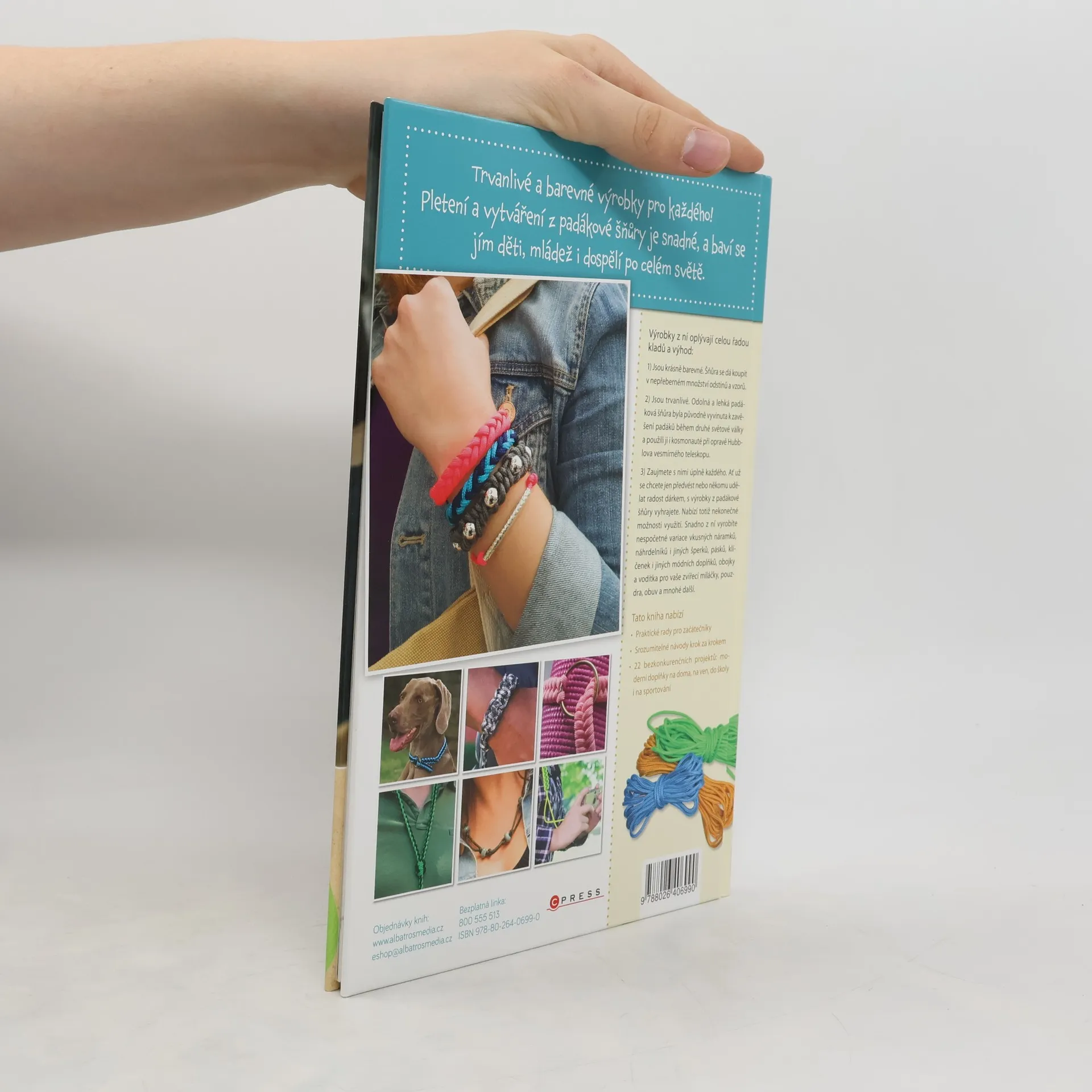 Pletení a vytváření z padákové šňůry je snadné a baví se jím děti, mládež i dospělí po celém světě. Snadno z ní vyrobíte nespočetné variace vkusných náramků, náhrdelníků i jiných šperků, pásků, klíčenek i dalších módních doplňků, obojky a vodítka pro vaše zvířecí miláčky, pouzdra i obuv. Díky této knize se srozumitelnými návody a praktickými radami brzy zazáříte s moderními doplňky na doma, na ven, do školy i na sportování. Výrobky z padákové šňůry oplývají celou řadou kladů a výhod: 1) Jsou krásně barevné. Šňůra se dá koupit v nepřeberném množství odstínů a vzorů. 2) Jsou trvanlivé. Odolná a lehká padáková šňůra byla původně vyvinuta k zavěšení padáků během druhé světové války a použili ji i kosmonauté při opravě Hubblova vesmírného teleskopu. 3) Zaujmete s nimi úplně každého. Ať už se chcete jen předvést nebo někomu udělat radost dárkem, s výrobky z padákové šňůry vyhrajete. Nabízí totiž nekonečné možnosti využití.
