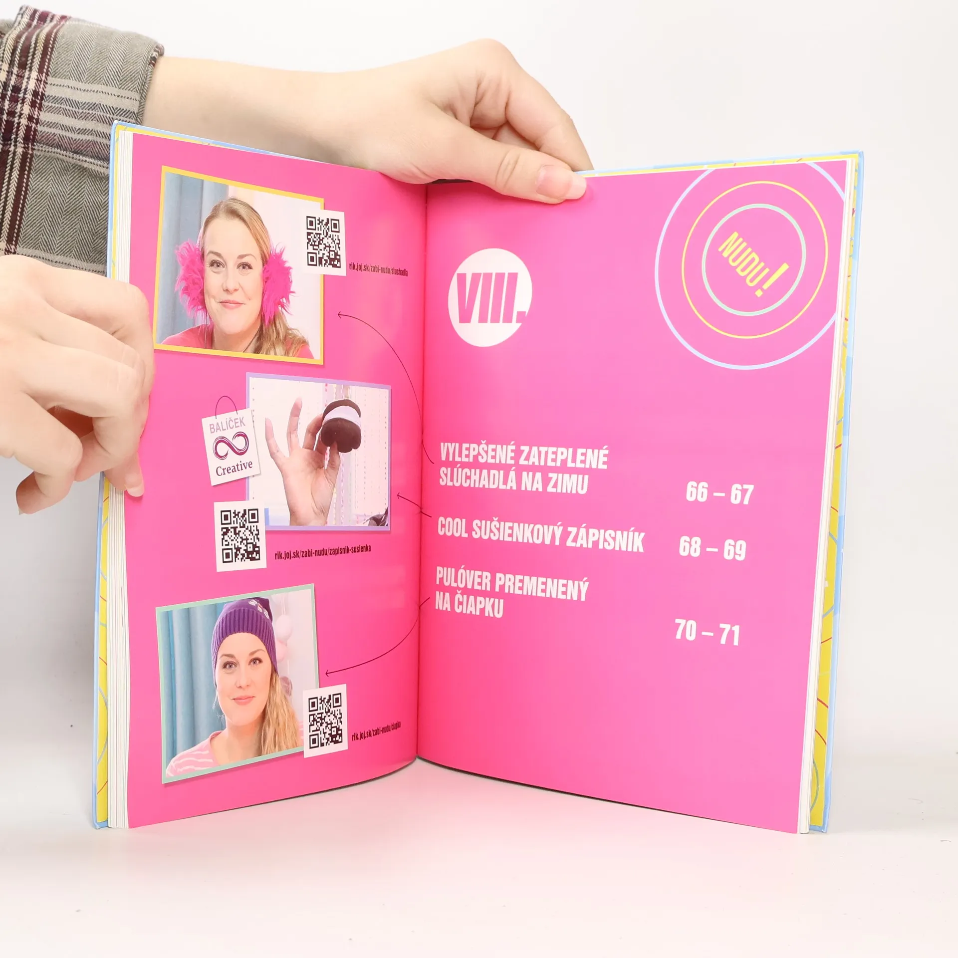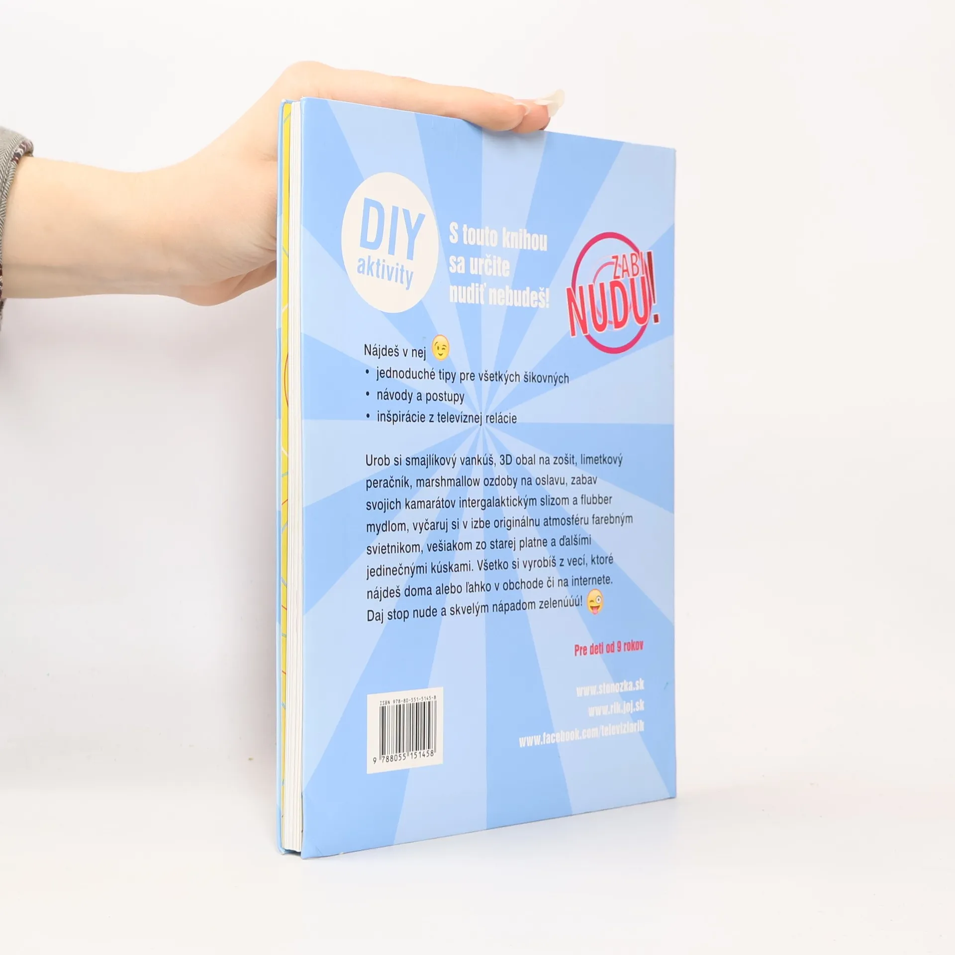 touto knihou sa určite nudiť nebudeš! Nájdeš v nej jednoduché tipy pre všetkých šikovných, návody a postupy, inšpirácie z televíznej relácie… Urob si smajlíkový vankúš, 3D obal na zošit, limetkový peračník, marshmallow ozdoby na oslavu, zabav svojich kamarátov intergalaktickým slizom a flubber mydlom, vyčaruj si v izbe originálnu atmosféru farebným svietnikom, vešiakom zo starej platne a ďalšími jedinečnými kúskami. Všetko si vyrobíš z vecí, ktoré nájdeš doma alebo ľahko v obchode či na internete. Daj stop nude a skvelým nápadom zelenúúú!