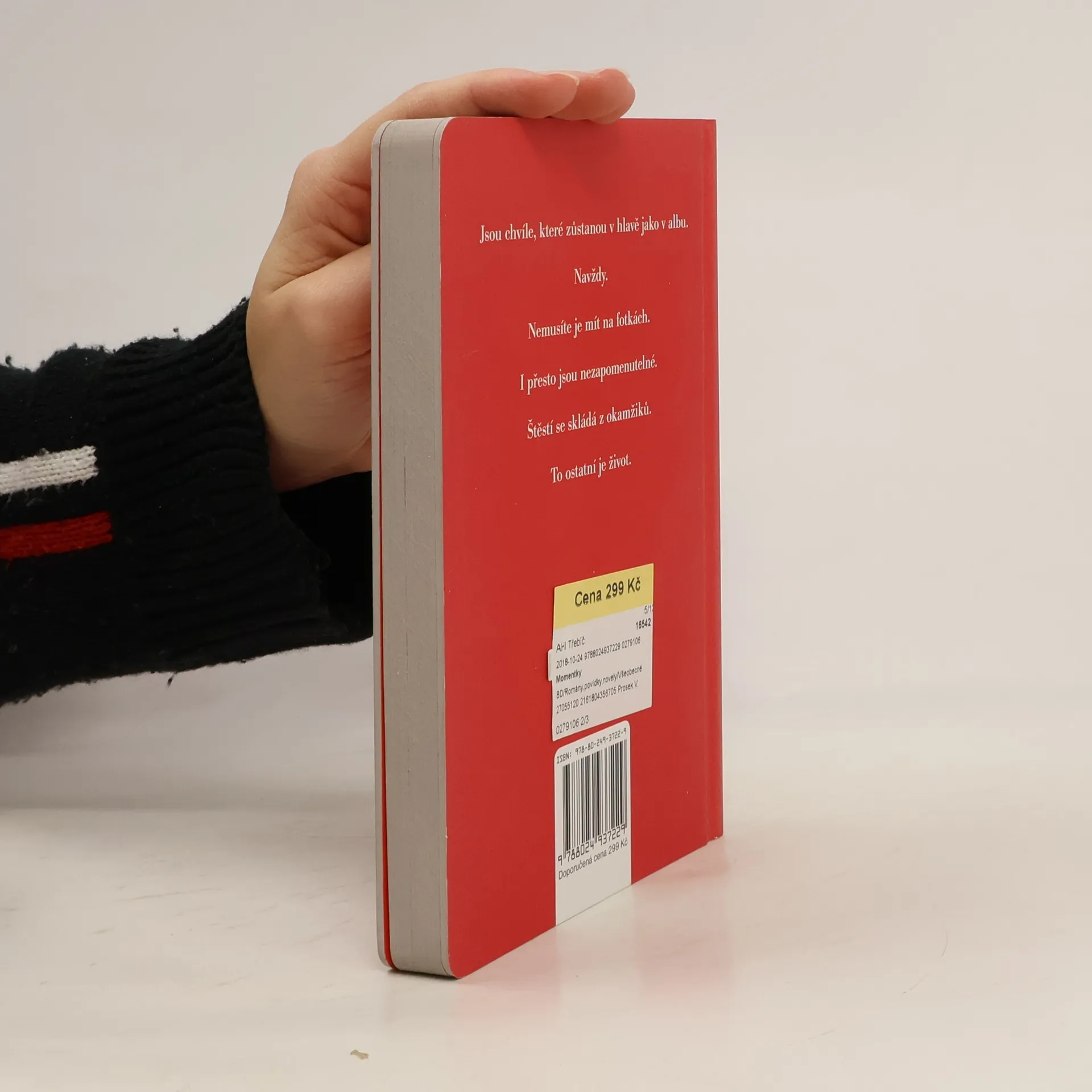 Povídky známé české spisovatelky a novinářky. Momentky zachycují chvíle, kdy se náš život láme; jsou to okamžiky hlubokého štěstí i bolestných ztrát nebo fatálních rozhodnutí. „Jsou chvíle, které zůstanou v hlavě jako v albu. Navždy. Nemusíte je mít na fotkách. I přesto jsou nezapomenutelné. Štěstí se skládá z okamžiků. To ostatní je život.“