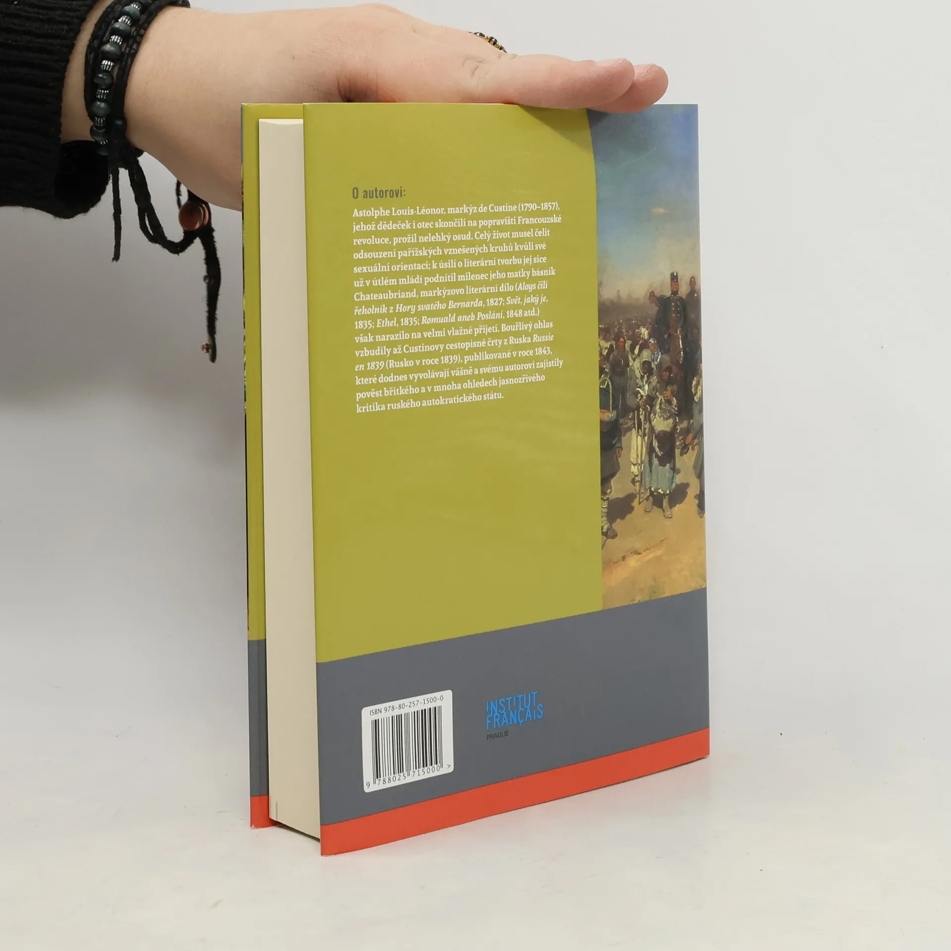 Výrazně politologicky a sociologicky laděné cestopisné dílo z pera francouzského aristokrata a spisovatele (1790 – 1857) po letech na významu nejenže neztratilo, ale naopak nabylo. Často je nazýván „Tocquevillem Ruska“ a význačný americký diplomat a historik George F. Kennan se o něm vyjádřil takto: „Není-li to velmi dobrá kniha o Rusku v roce 1839, je to skvělá kniha, nesporně nejlepší ze všech, o Stalinově Rusku a vůbec ne špatná kniha o Rusku Brežněvově a Kossyginově.“ A jeho vyjádření lze vztáhnout i k Rusku Gorbačovově a Putinově. Markýz de Custine, jemuž vedle vlastního spisovatelského talentu a pozorovatelského důvtipu nechyběli ani věrohodní, spolehliví místní informátoři, své – dodnes platné – postřehy během cesty po Rusku zaznamenával formou fiktivních dopisů, které z Ruska vyvezl doslova s nasazením vlastního života. V Rusku jeho dílo mohlo v úplnosti vyjít až roku 1996, české vydání vychází z výboru francouzského historika Pierra Nory, které uvozuje editorova předmluva.