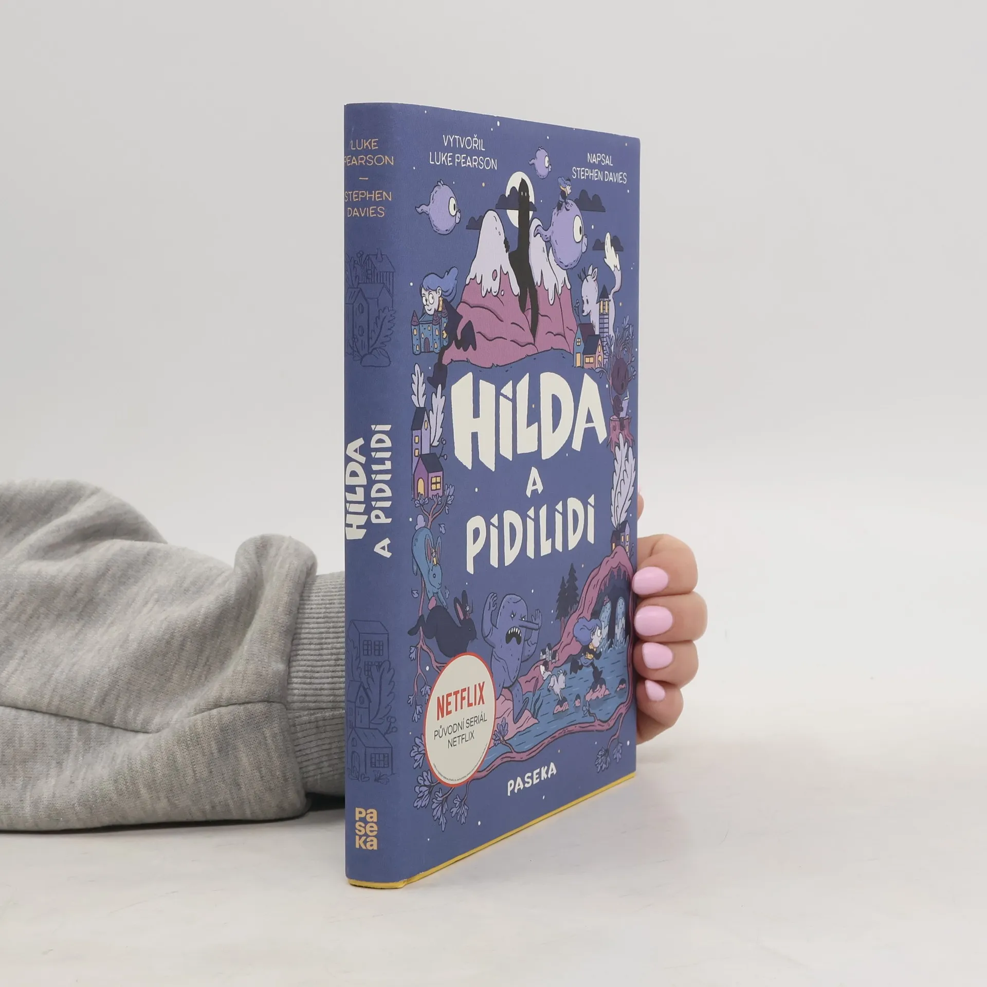 Tohle je Hilda, průzkumnice, dobrodružka a fanynka kamenů. Na světě má nejradši dvě věci: svůj skicák a psa Větvíka. Tedy, na světě má nejradši tři věci: svůj skicák, psa Větvíka a maminku. Pardon, na světě má nejradšisvůj skicák, psa Větvíka, maminku a všechny nadpřirozené bytosti a příšerky, které žijí u nich v údolí. Hildina dobrodružství nejprve uchvátila čtenářky a čtenáře komiksů, poté vznikl animovaný seriál od Netflixu a nyní je tu knižní série. Prožijte s Hildou znovu její první setkánís trollem nebo s párem zamilovaných obrů. Pro skalní fanynky a fanoušky nabízí kniha desítky nových ilustrací a rozšíření smyšlené krajiny, do které se tak rádi vracíme. A pokud jste o Hildě nikdy neslyšeli, máme pro vás dvě otázky: Na co čekáte? A bolí oči hodně, když člověk poprvé vyleze z jeskyně?