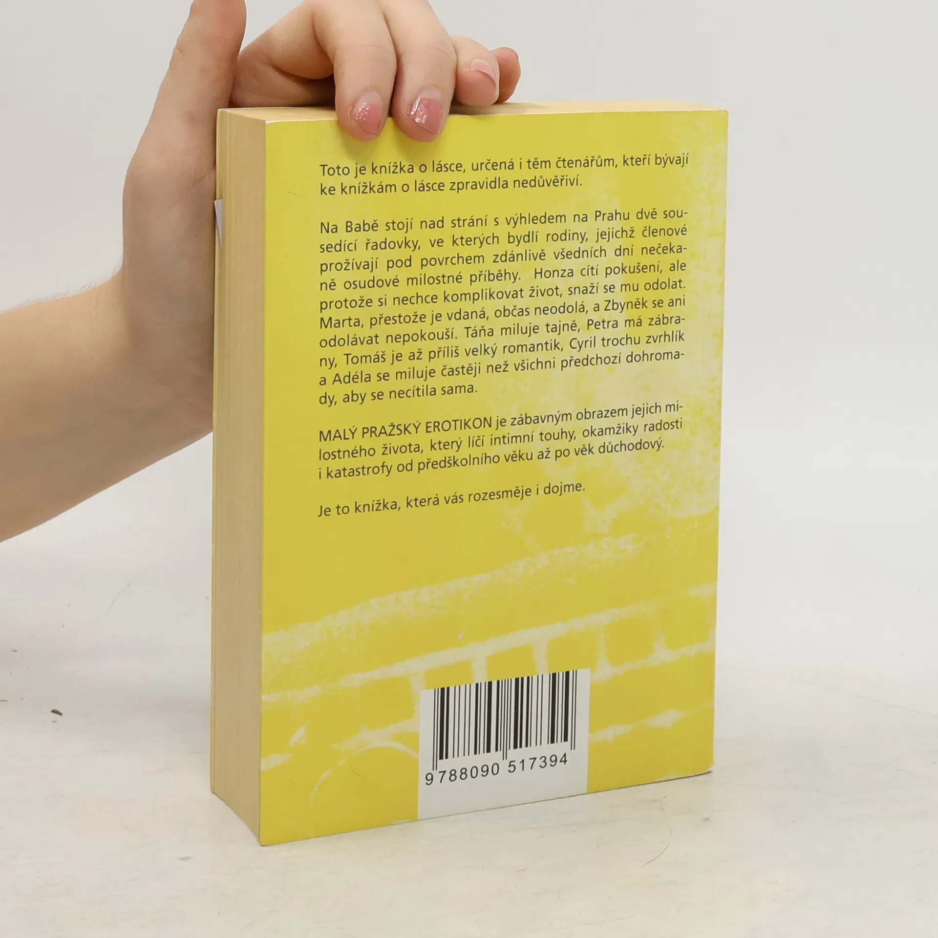 Malý pražský erotikon je druhým románem režiséra a autora úspěšných divadelních komedií Patrika Hartla, jehož literární prvotina PRVOK, ŠAMPÓN, TEČKA a KAREL se těší velkému zájmu čtenářů. Tento nový román je díky autorovu nekonformnímu nadhledu a smyslu pro humor určený i těm, kteří bývají ke knížkám o lásce zpravidla nedůvěřiví. Na Babě stojí nad strání s výhledem na Prahu dvě sousedící řadovky, ve kterých bydlí rodiny, jejichž členové prožívají pod povrchem zdánlivě všedních dní nečekaně osudové milostné příběhy. Honza cítí pokušení, ale protože si nechce komplikovat život, snaží se mu odolat. Marta, přestože je vdaná, občas neodolá, a Zbyněk se ani odolávat nepokouší. Táňa miluje tajně, Petra má zábrany, Tomáš je až příliš velký romantik, Cyril trochu zvrhlík a Adéla se miluje častěji než všichni předchozí dohromady, aby se necítila sama. Malý pražský erotikon je zábavným obrazem jejich intimního života, který líčí jejich touhy, okamžiky radosti i katastrofy od předškolního věku až po věk důchodový.