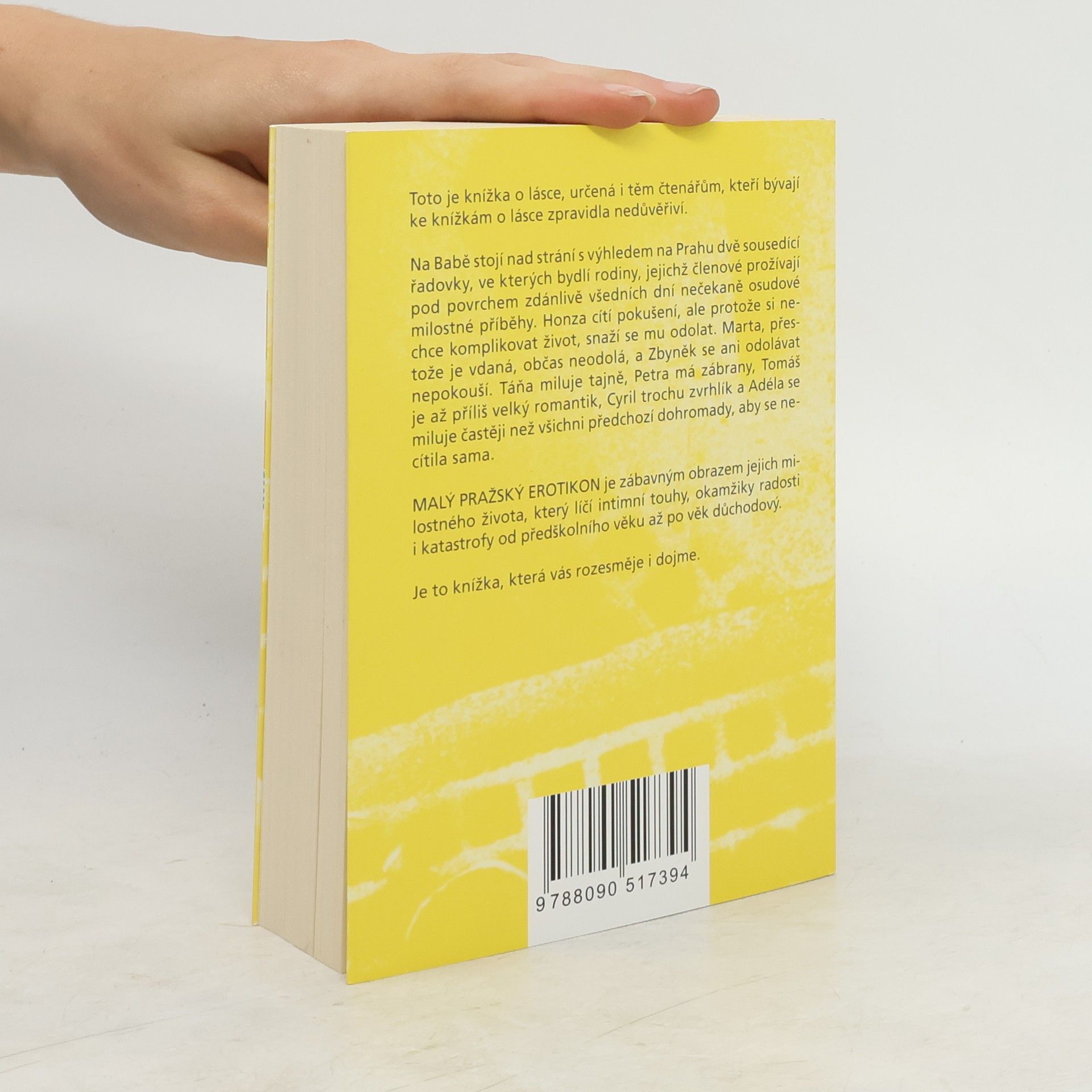 Malý pražský erotikon je druhým románem režiséra a autora úspěšných divadelních komedií Patrika Hartla, jehož literární prvotina PRVOK, ŠAMPÓN, TEČKA a KAREL se těší velkému zájmu čtenářů. Tento nový román je díky autorovu nekonformnímu nadhledu a smyslu pro humor určený i těm, kteří bývají ke knížkám o lásce zpravidla nedůvěřiví. Na Babě stojí nad strání s výhledem na Prahu dvě sousedící řadovky, ve kterých bydlí rodiny, jejichž členové prožívají pod povrchem zdánlivě všedních dní nečekaně osudové milostné příběhy. Honza cítí pokušení, ale protože si nechce komplikovat život, snaží se mu odolat. Marta, přestože je vdaná, občas neodolá, a Zbyněk se ani odolávat nepokouší. Táňa miluje tajně, Petra má zábrany, Tomáš je až příliš velký romantik, Cyril trochu zvrhlík a Adéla se miluje častěji než všichni předchozí dohromady, aby se necítila sama. Malý pražský erotikon je zábavným obrazem jejich intimního života, který líčí jejich touhy, okamžiky radosti i katastrofy od předškolního věku až po věk důchodový.