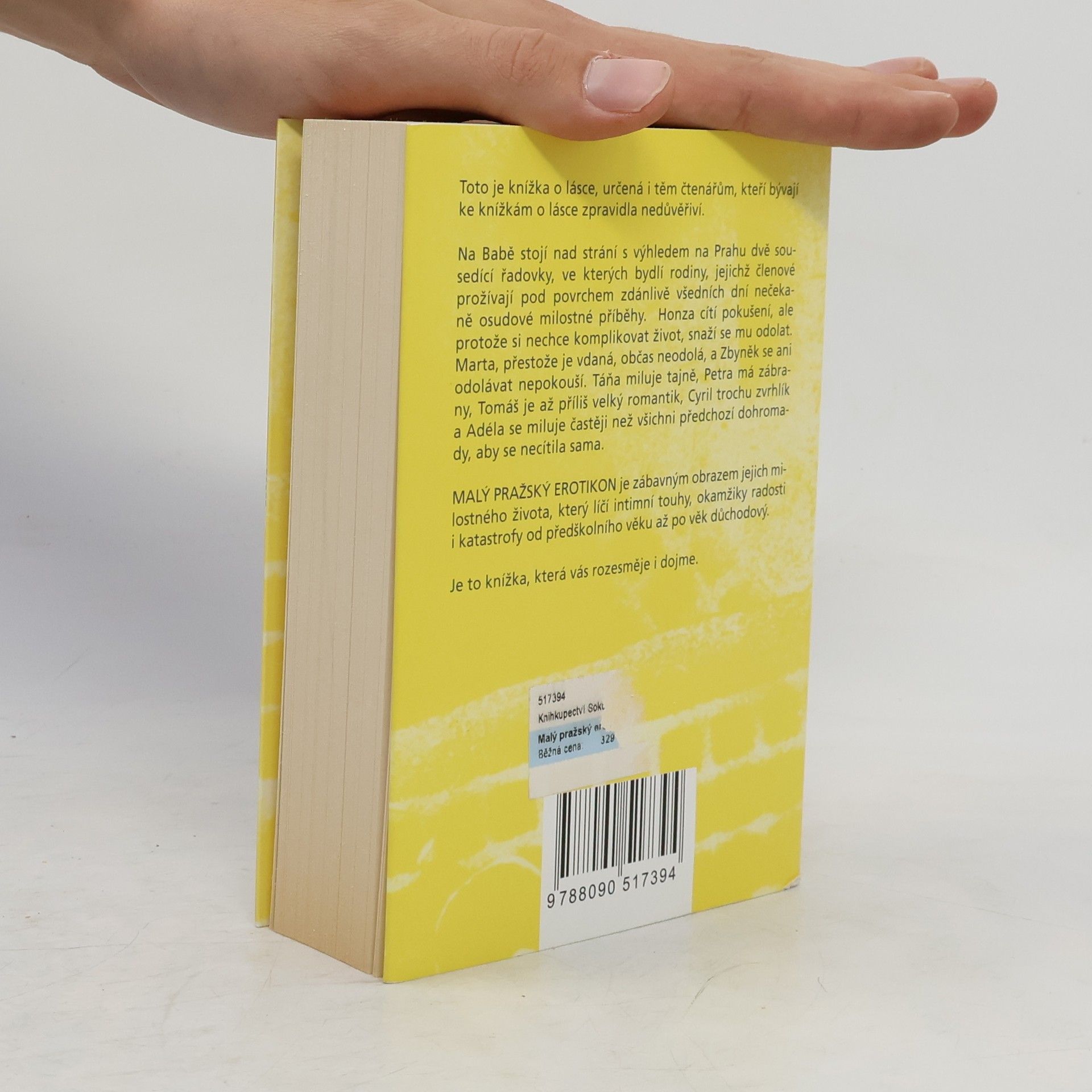 Malý pražský erotikon je druhým románem režiséra a autora úspěšných divadelních komedií Patrika Hartla, jehož literární prvotina PRVOK, ŠAMPÓN, TEČKA a KAREL se těší velkému zájmu čtenářů. Tento nový román je díky autorovu nekonformnímu nadhledu a smyslu pro humor určený i těm, kteří bývají ke knížkám o lásce zpravidla nedůvěřiví. Na Babě stojí nad strání s výhledem na Prahu dvě sousedící řadovky, ve kterých bydlí rodiny, jejichž členové prožívají pod povrchem zdánlivě všedních dní nečekaně osudové milostné příběhy. Honza cítí pokušení, ale protože si nechce komplikovat život, snaží se mu odolat. Marta, přestože je vdaná, občas neodolá, a Zbyněk se ani odolávat nepokouší. Táňa miluje tajně, Petra má zábrany, Tomáš je až příliš velký romantik, Cyril trochu zvrhlík a Adéla se miluje častěji než všichni předchozí dohromady, aby se necítila sama. Malý pražský erotikon je zábavným obrazem jejich intimního života, který líčí jejich touhy, okamžiky radosti i katastrofy od předškolního věku až po věk důchodový.