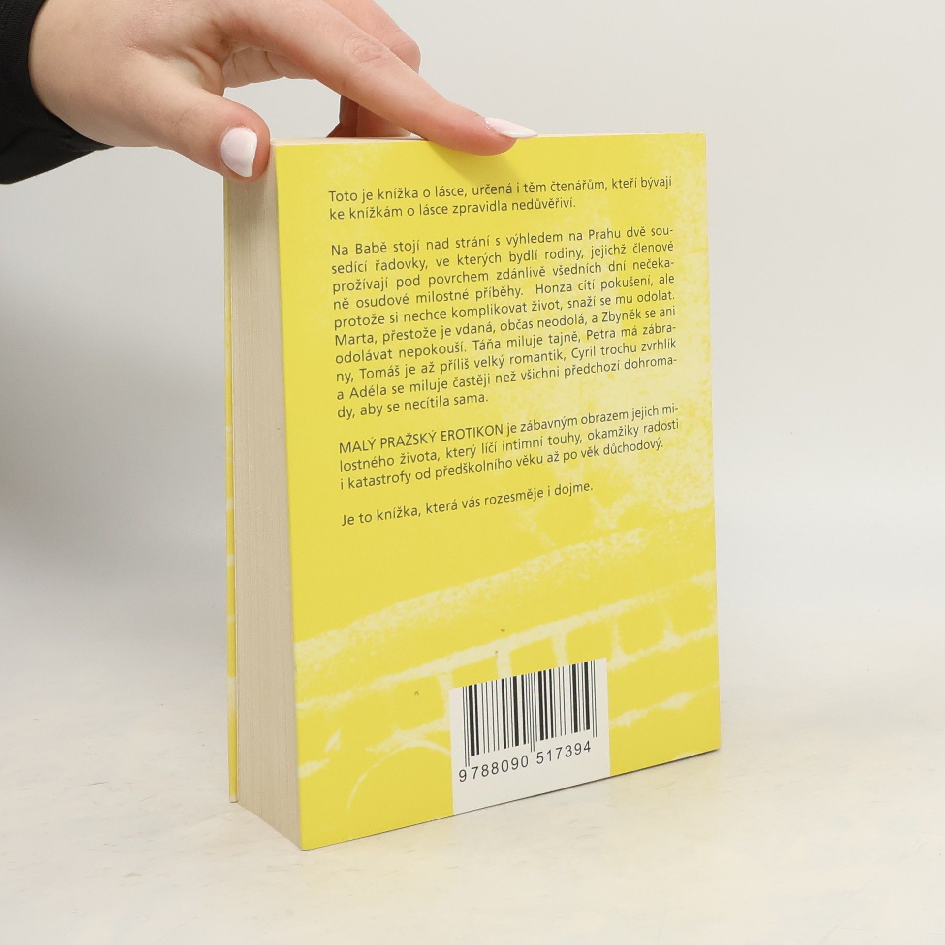 Malý pražský erotikon je druhým románem režiséra a autora úspěšných divadelních komedií Patrika Hartla, jehož literární prvotina PRVOK, ŠAMPÓN, TEČKA a KAREL se těší velkému zájmu čtenářů. Tento nový román je díky autorovu nekonformnímu nadhledu a smyslu pro humor určený i těm, kteří bývají ke knížkám o lásce zpravidla nedůvěřiví. Na Babě stojí nad strání s výhledem na Prahu dvě sousedící řadovky, ve kterých bydlí rodiny, jejichž členové prožívají pod povrchem zdánlivě všedních dní nečekaně osudové milostné příběhy. Honza cítí pokušení, ale protože si nechce komplikovat život, snaží se mu odolat. Marta, přestože je vdaná, občas neodolá, a Zbyněk se ani odolávat nepokouší. Táňa miluje tajně, Petra má zábrany, Tomáš je až příliš velký romantik, Cyril trochu zvrhlík a Adéla se miluje častěji než všichni předchozí dohromady, aby se necítila sama. Malý pražský erotikon je zábavným obrazem jejich intimního života, který líčí jejich touhy, okamžiky radosti i katastrofy od předškolního věku až po věk důchodový.