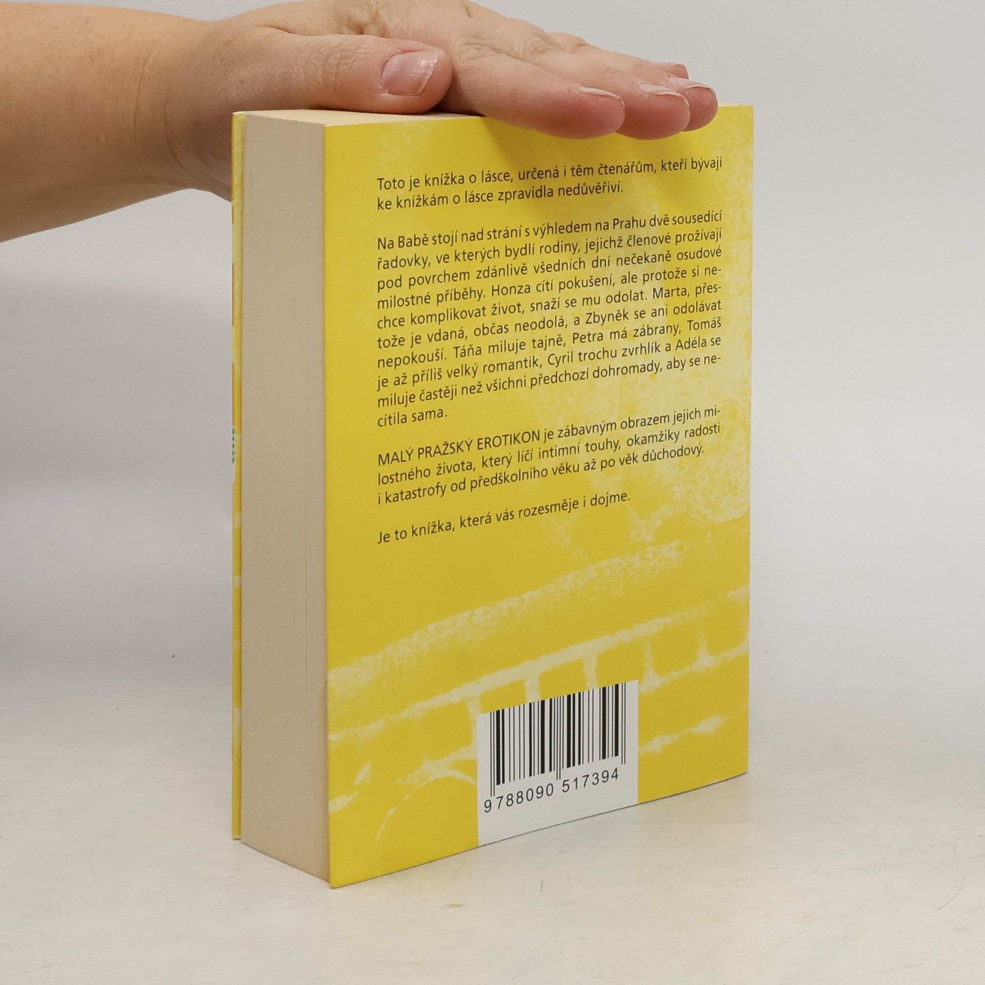 Malý pražský erotikon je druhým románem režiséra a autora úspěšných divadelních komedií Patrika Hartla, jehož literární prvotina PRVOK, ŠAMPÓN, TEČKA a KAREL se těší velkému zájmu čtenářů. Tento nový román je díky autorovu nekonformnímu nadhledu a smyslu pro humor určený i těm, kteří bývají ke knížkám o lásce zpravidla nedůvěřiví. Na Babě stojí nad strání s výhledem na Prahu dvě sousedící řadovky, ve kterých bydlí rodiny, jejichž členové prožívají pod povrchem zdánlivě všedních dní nečekaně osudové milostné příběhy. Honza cítí pokušení, ale protože si nechce komplikovat život, snaží se mu odolat. Marta, přestože je vdaná, občas neodolá, a Zbyněk se ani odolávat nepokouší. Táňa miluje tajně, Petra má zábrany, Tomáš je až příliš velký romantik, Cyril trochu zvrhlík a Adéla se miluje častěji než všichni předchozí dohromady, aby se necítila sama. Malý pražský erotikon je zábavným obrazem jejich intimního života, který líčí jejich touhy, okamžiky radosti i katastrofy od předškolního věku až po věk důchodový.