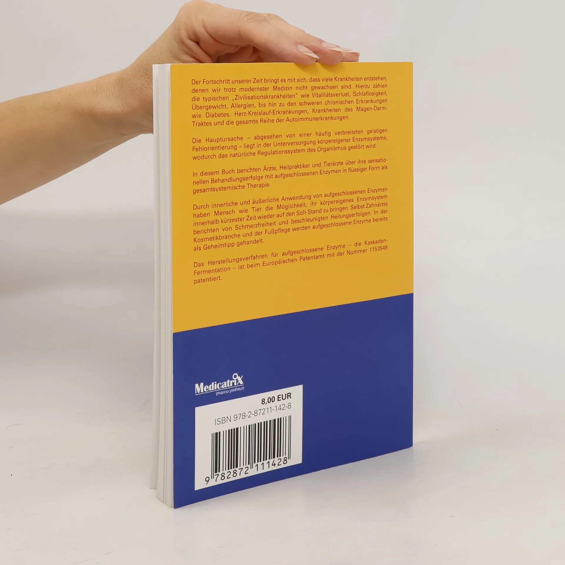 Der Fortschritt unserer Zeit bringt es mit sich, dass viele Krankheiten entstehen, denen wir trotz modernster Medizin nicht gewachsen sind. Hierzu zählen die typischen „Zivilisationskrankheiten” wie Vitalitätsverlust, Schlaflosigkeit, Übergewicht, Allergien, bis hin zu den schweren chronischen Erkrankungen wie Diabetes, Herz-Kreislauf-Erkrankungen, Krankheiten des Magen-Darm-Traktes und die gesamte Reihe der Autoimmunerkrankungen. Die Hauptursache – abgesehen von einer häufig verbreiteten geistigen Fehlorientierung – liegt in der Unterversorgung körpereigener Enzymsysteme, wodurch das natürliche Regulationssystem des Organismus gestört wird. In diesem Buch berichten Ärzte, Heilpraktiker und Tierärzte über ihre sensationellen Behandlungserfolge mit aufgeschlossenen Enzymen in flüssiger Form als gesamtsystemische Therapie. Durch innerliche und äußerliche Anwendung von aufgeschlossenen Enzymen haben Mensch wie Tier die Möglichkeit, ihr körpereigenes Enzymsystem innerhalb kürzester Zeit wieder auf den Soll-Stand zu bringen. Selbst Zahnärzte be-richten von Schmerzfreiheit und beschleunigten Heilungserfolgen. In der Kosmetikbranche und der Fußpflege werden aufgeschlossene Enzyme bereits als Geheimtipp gehandelt. Das Herstellungsverfahren für aufgeschlossene Enzyme – die Kaskaden-Fer-mentation – ist beim Europäischen Patentamt mit der Nummer 1153549 patentiert.